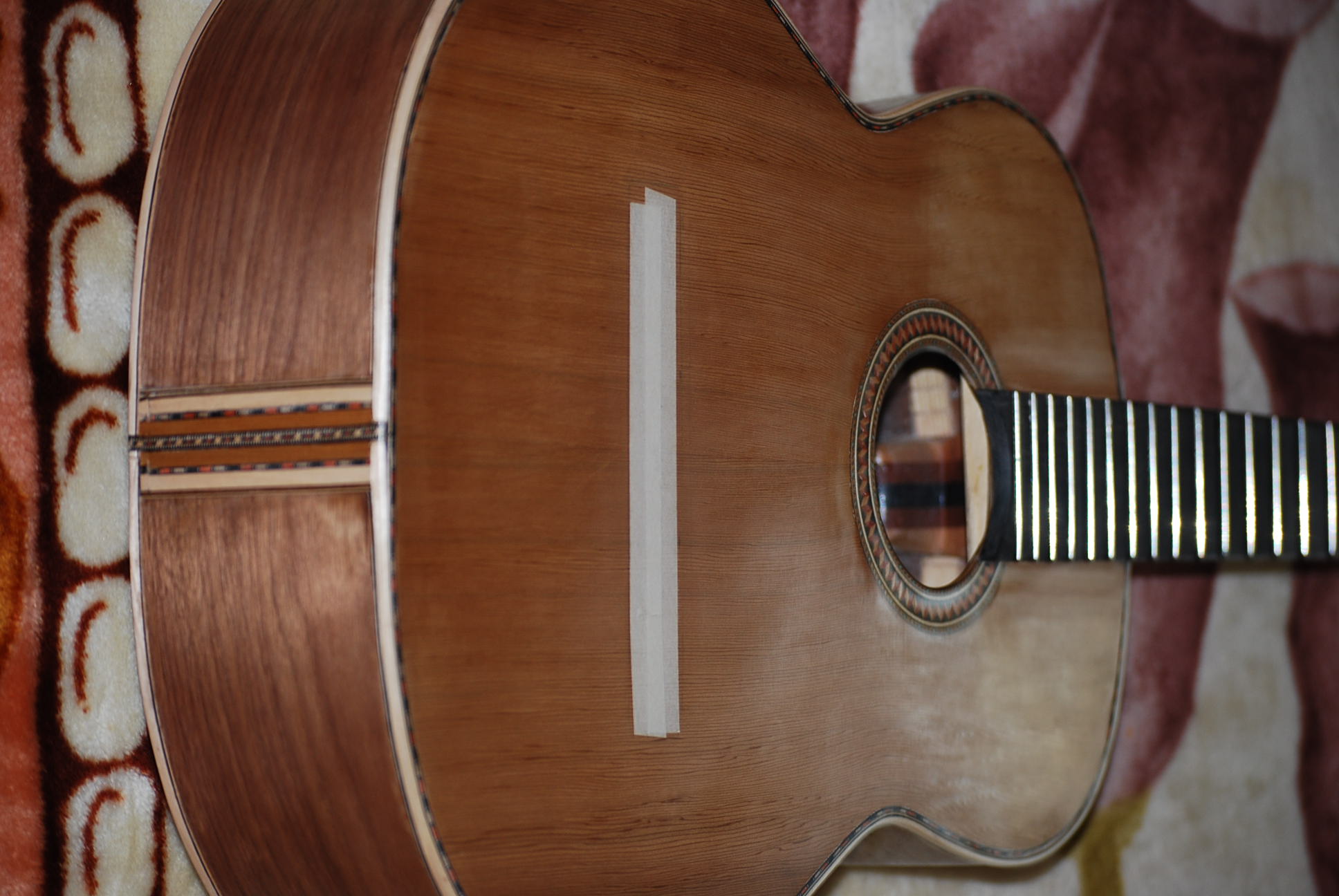Ευχαριστώ Λάμπρο...η αλήθεια είναι ότι για να σφίξω δεινοπάθησα....τα δε φιλέτα γύρω γύρω δεν είχαν την  ίδια καμπυλότητα με την κιθάρα και ήταν αρκετά χοντρά (2,5χλ)με αποτέλεσμα να χρειάζονται δύναμη για να έρθουν σε απόλυτη επαφή με το σώμα της κιθάρας.....