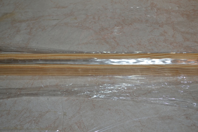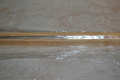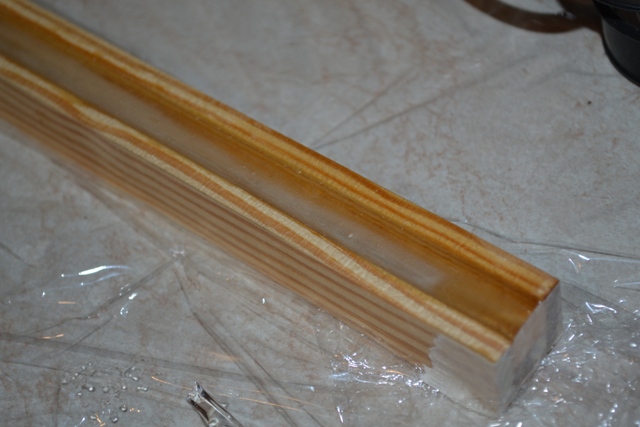 Και ερχομαι στην πατεντα που εκανα για το μανικο. Χρησιμοποιησα μακριες ινες γιαλιου που εβγαλα απο ενα υαλουφασμα (απο αυτα που χρησιμοποιουμε στις πολυεστερικες κατασκευες. Κολλησα 3 πηχακια ετσι ωστε να σχηματιζουν ενα καναλι 1Χ1 εκ περιπου. Εκλεισα τις ακρες με χαρτοταινια , το γεμισα με υαλονηματα και εχυσα απο πανω εποξικη ρητινη.