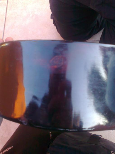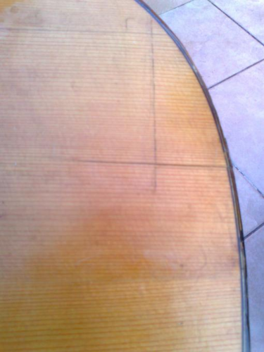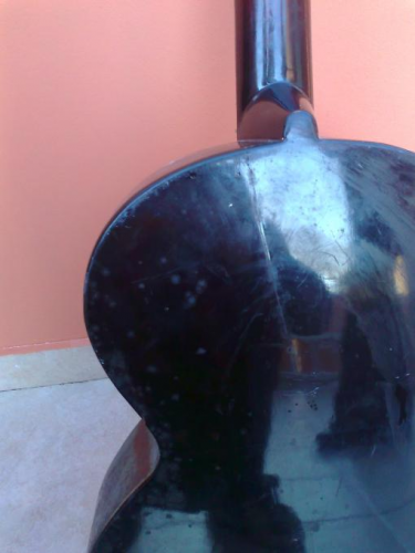 Κατι που ισως μαρτυρα προηγουμενη επισκευη φαινεται και στη 10η φωτο...πανω στο πλαινο της κιθαρας θα διακρινετε μια καπως πιο ανοικτοχρωμη κηλιδα....εκει λοιπον ειναι σαν να ξεφλουδισε και να ξαναβαφτηκε.