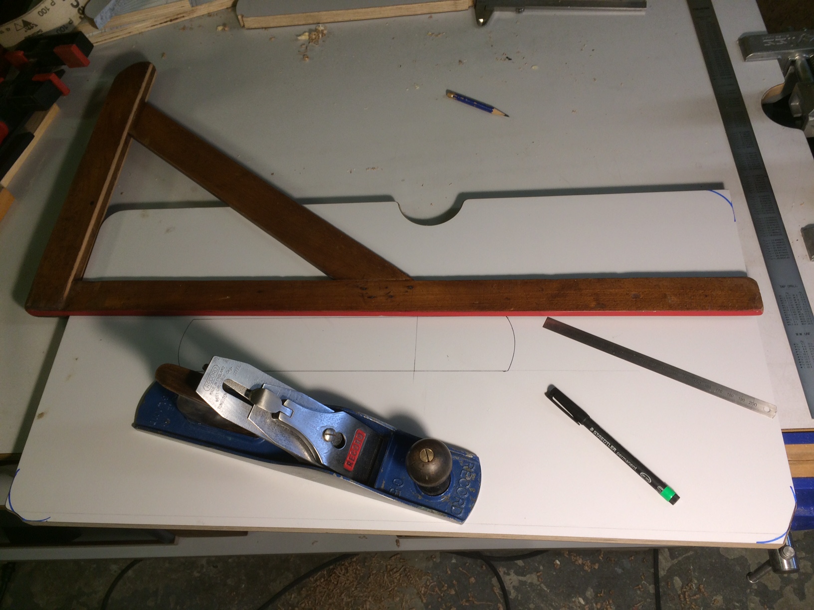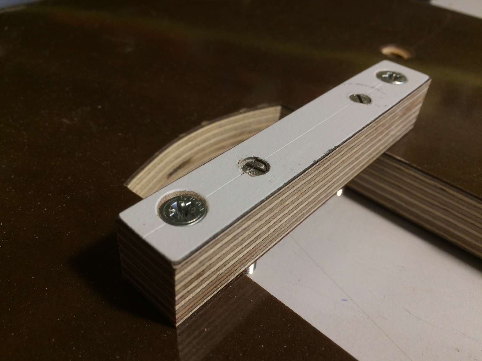 Χρησιμοποίησα παλιά τάβλα γραφείου επενδεδυμένη πάνω-κάτω με χοντρή μελαμίνη αλλά μπορεί να γίνει και από πάγκο κουζίνας ή και άλλο παρόμοιο υλικό. Το ζητούμενο είναι να έχει απόλυτα επίπεδη επιφάνεια.