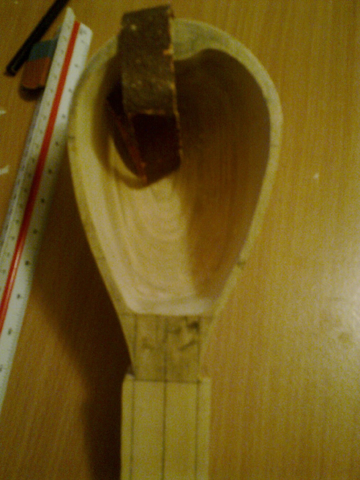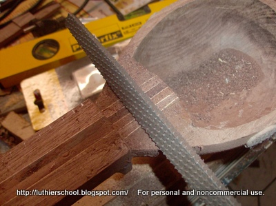 Την κλίση την δίνεις στην φωλιά(μορσότρυπα),δηλαδή στο αυλάκι που ανοίγεις για να κολλήσεις το μόρσο και όχι στο μόρσο,το μόρσο παραμένει επίπεδο. Το εσωτερικό του μπαγλαμά έχει κατεργαστεί με λούκια,ξύστρες και γυαλόχαρτα στο τέλος.