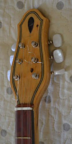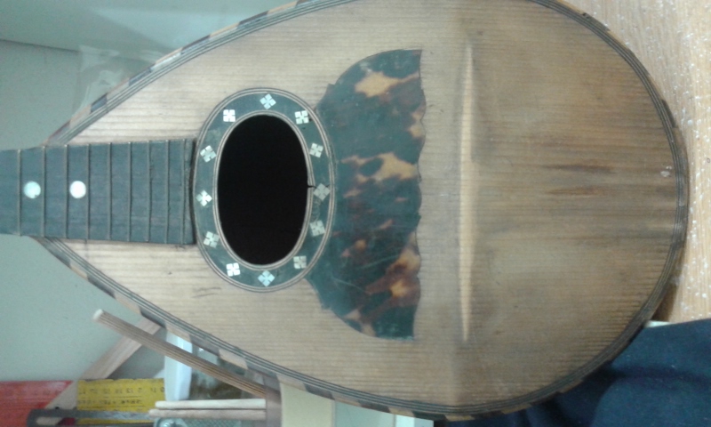 Αυτό είναι μια αποτυχημένη επέμβαση σε μαντολίνο που έγινε αρκετά χρόνια πριν (από ημι-επαγγελματία οργανοποιό) και το νέο όργανο ούτε που πλησίασε το παλιό σε ήχο. Κατά τη γνώμη μου η αιτία είναι η αλλαγή της θέσης του καβαλάρη (δεν άλλαξε και τίποτα άλλο δηλαδή).