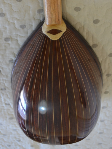 Σκαφος-καπακι απο το παλιο μαντολινο. Μανικο φλαμουρι -οξια-ιροκο και εποξικη ρητινη με υαλονηματα. Καραολο φλαμουρι-κυπαρισσι.