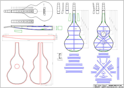 Τα πλαϊνά θα κολληθούν με τους τάκους να "κοιτάνε" την βάση (σαν να έχω το όργανο "μπρούμυτα"). Η κατάσταση για την κόλληση των πλαϊνών θα είναι περίπου αυτή, θα γίνει όμως αφού πρώτα διαμορφωθούν οι τάκοι στα τελικά τους σχήματα. Εδώ ο πάνω τάκος λείπει εντελώς, μόνο το headstock φαίνεται.