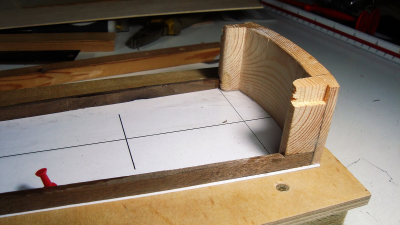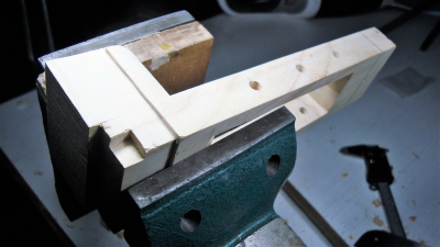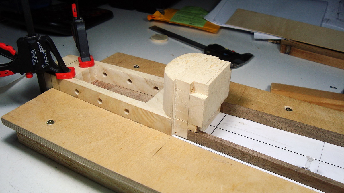 Εδώ φαίνεται και μια κόντρα που βίδωσα (εσωτερικά του σχεδίου της βάσης) για να μπορέσω να σφίξω χωρίς κίνδυνο να "φύγουν" τα πλαϊνά από τις ευθείες του σχεδίου.