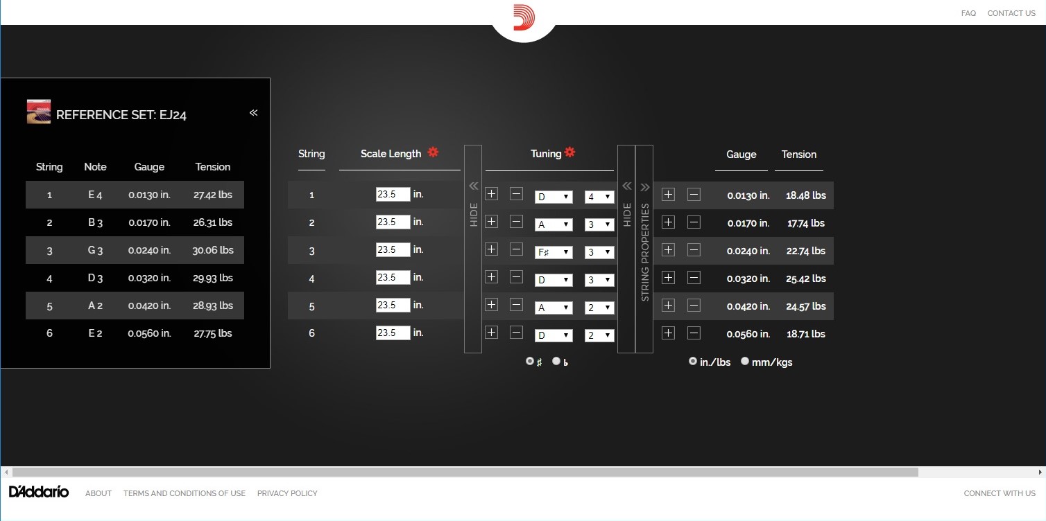 Για χορδές D' addario συμβατικές (σετ) EJ24 (0.13-0.56) και EJ18 (0.14-0.59) και στα δύο κουρδίσματα και για John Pierce για Hawaiian και κούρδισμα open D (0.15-0.60)