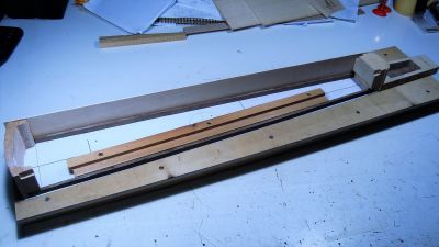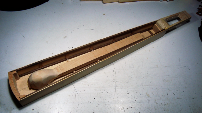 έσκαψα φωλιές για τα kerfing (Αμερικάνικη καρυδιά) στους τάκους. Κόλλησα πρώτα αυτά του καπακιού, μετά τα πλαϊνά και τέλος τα kerfing της πλάτης.