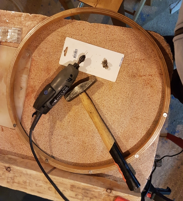 Στις αντίστοιχες θέσεις της στεφάνης περάστηκαν πινέζες για να μην σπρώχνουν οι βίδες ξύλο αλλά μέταλλο