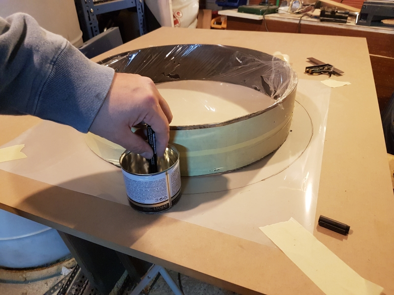 Κατόπιν, σημάδεμα για το πρώτο κόψιμο (η κονσέρβα έχει μικρή τρύπα στο κέντρο του πάτου της. Από εκεί περνά ο μαρκαδόρος και γράφει σε σταθερή απόσταση από την άκρη της κονσέρβας.