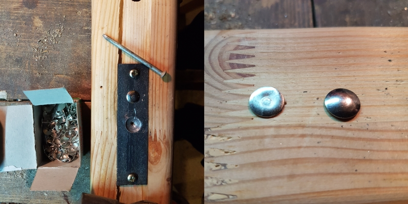 Οι δε πινέζες είναι τροποποιημένες (με το τζιγκάκι που φαίνεται αριστερά) ώστε οι κεφαλές τους από κυρτές (δεξιά) να γίνουν κοίλες (δίπλα στις απείραχτες)