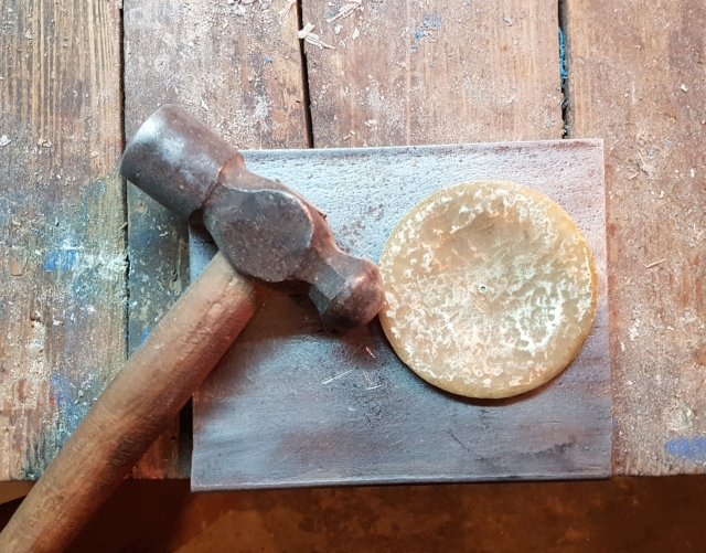 Τα ζίλια είναι από ένα κομμάτι μπρουτζοσωλήνα (από σιφόνι νιπτήρα) Φ30 Χ 10εκ. Σφυρηλάτηση στο χέρι, πολύ ευχαριστημένος με το ηχητικό αποτέλεσμα οπότε όπου βλέπω νιπτήρα, τον περιεργάζομαι καλά-καλά