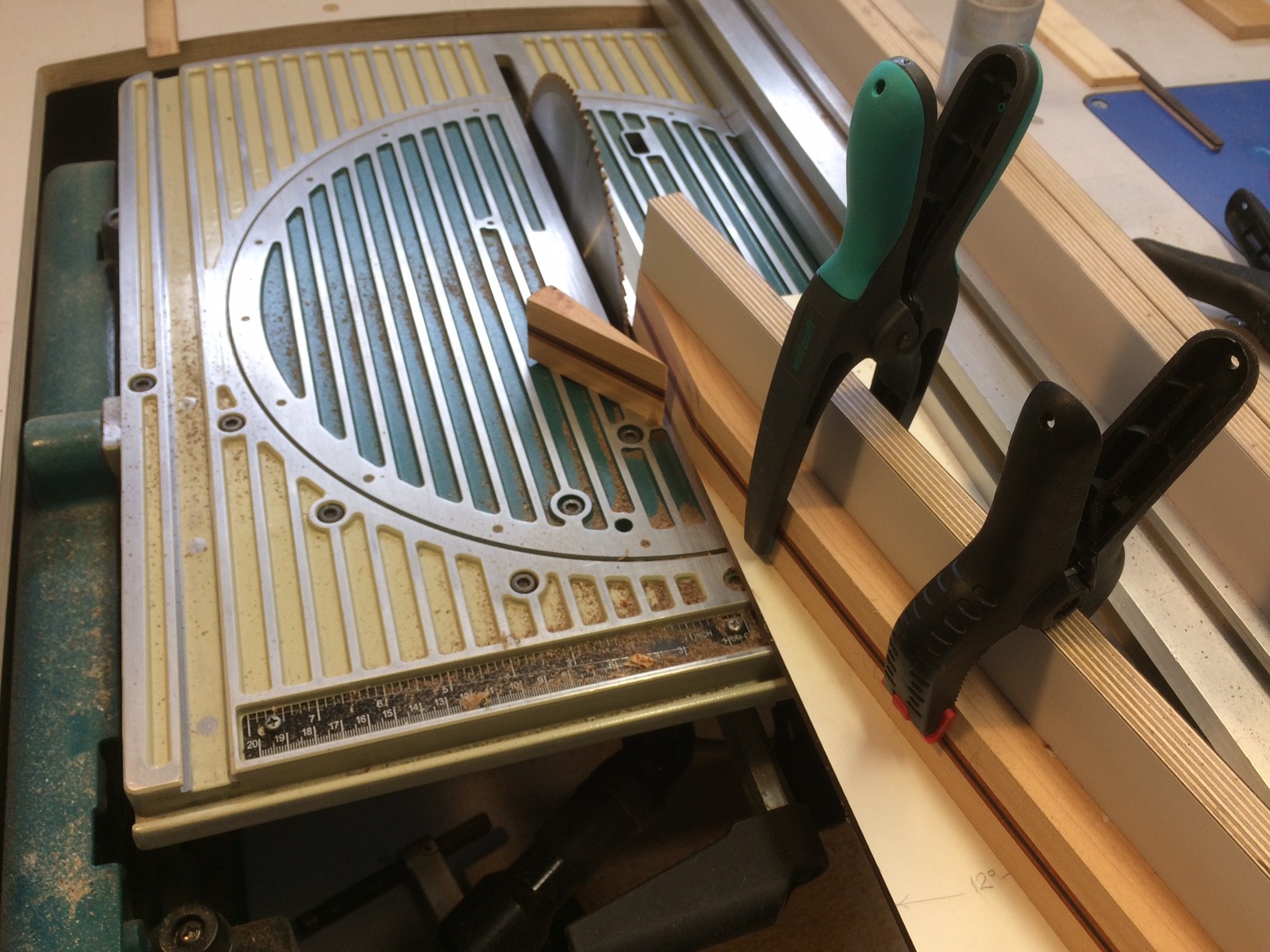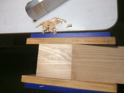 Για την φάλτσοκοπή στο μάνικο έφτιαξα μια απλή διάταξη σαν κι αυτές που έχω δει στο Συσωλήνα. Οι 12 μοίρες γωνία μου φάνηκαν μια φρόνιμη επιλογή. Το δισκοπρίονο κόβει με σχετική ακρίβεια αλλά απ΄ότι φαίνεται χρειάζεται επί πλέον δούλεμα με μικρή χειροπλάνη (block plane). Δεν θέλω να ξεστρατίσω σε λεπτομέρειες για τις πλάνες, θα πω μόνο ότι προσωπικά έχω δει μεγάλη διαφορά μετά από ένα καλό ακόνισμα.