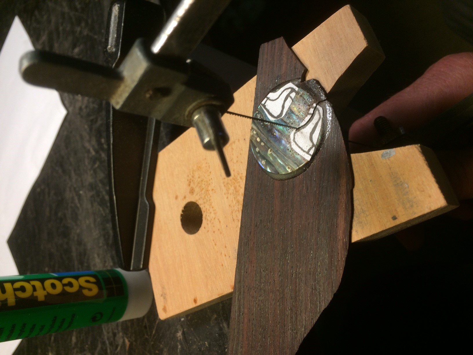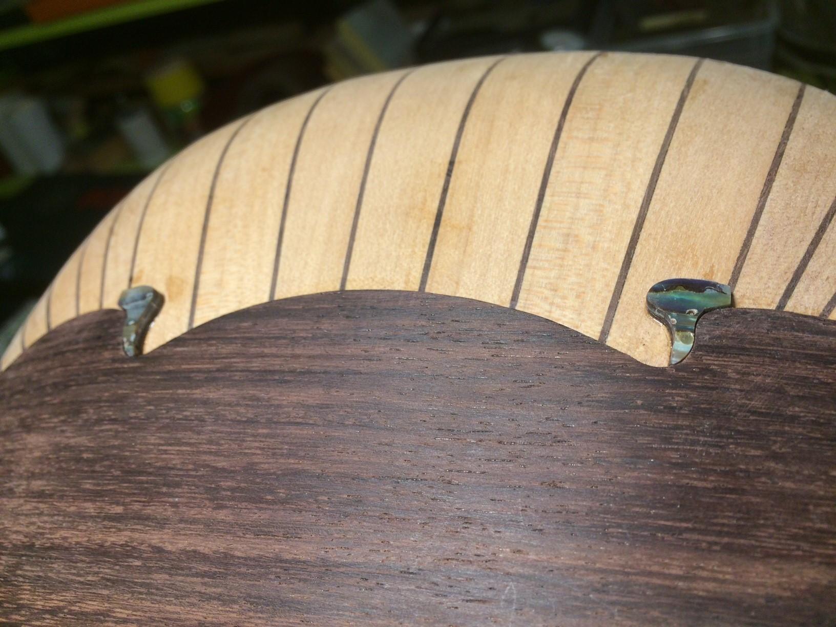 Επίσης, τα δύο οστρακάκια με το ιδιαίτερο σχήμα τους επαναφέρανε (κάπως, λέμε τώρα) το χαρακτήρα art-nouveau που ανελέητα διώχθηκε σε προηγούμενο επεισόδιο. Όστρακο επίσης προβλέπει και ή σύνδεση πλαινάρι-κολάντζα οπότε υπηρετείται και η διακοσμητική συνέπεια –ο καλόγερος είναι περιχαρής! Ο τρόπος χάραξης για την ένθεση του όστρακου πλευρικά έγινε με λίμα και γυαλόχαρτα με οδηγό.