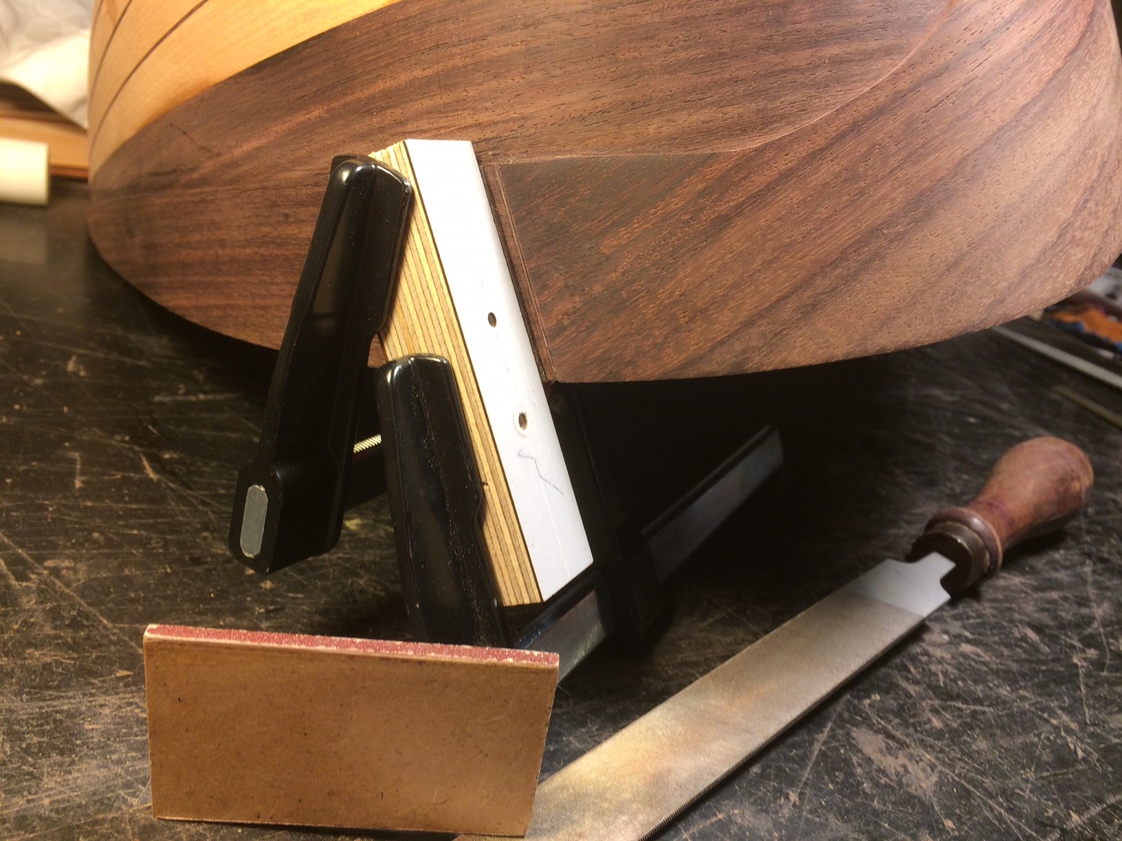 Πριν να κολληθούν τα πλαινάρια, έγινε λιμάρισμα του τάκου σε κάτι λιγότερο από 30 mm. Η ταστιέρα στην ένωση προβλέπεται να έχει κάτι παραπάνω από 32mm πλάτος όταν κολληθούν τα πλαινάρια (που επίσης θα λιμαριστούν).
