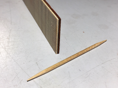 To purfling προβλέπεται να είναι μαύρο-σφενδάμι-παντούκ (δηλαδή-μαύρο-άσπρο-κόκκινο όπως και στο καράολο μόνο που εκεί το μαύρο είναι έβενος). Σφενδαμάκι και παντούκ δουλεύτηκαν μαζί αφού κολλήθηκαν με κυανοακρυλική κόλλα (για ν' αντέξει κουρμπάρισμα στο θερμαστήρι) και στη συνέχεια κόπηκαν λεπτές λωρίδες στην κορδέλα.