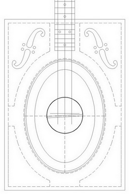 Ξεκινώντας από την πρώτη κατασκευή - τετράχορδο resonator - καταρχάς το πιατάκι ήθελε κάποια βάση για να στηριχτεί κι έτσι προέκυψε αυτό το σχέδιο