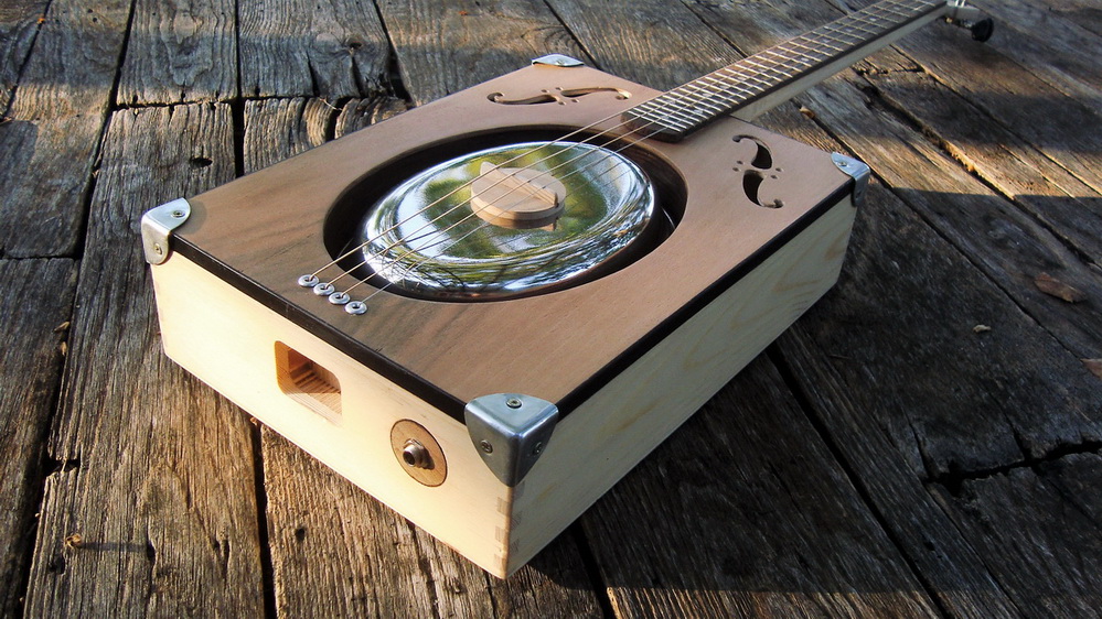Το cigar box (guitar ή και fiddle = βιολί) είναι αυτό που δηλώνει το όνομά του: κουτί από πούρα. Τα πετούσαν οι αφεντάδες στις φυτείες, τα μάζευαν οι σκλάβοι και τα έκαναν όργανα. Τα πρώτα είναι εντελώς «πρωτόγονες» κατασκευές με ότι υλικά έβρισκαν, ένα παλούκι για μπράτσο και μια ή δυο χορδές. Χωρίς τάστα (κάποια στιγμή άρχισαν να ζωγραφίζουν τάστα στις «κιθάρες», πολύ αργότερα μπήκαν και ένθετα (αρχικά κι αυτά ιδιοκατασκευές με σύρματα όπως κι οι χορδές), βίδες για κλειδιά και καβαλάρηδες κτλ.