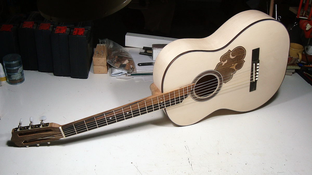 Πηρα ενα κομματι κοντραπλακε 2cm το σχεδιασα επανω και πηγα σε ενα φιλο που ειχε δισκοπριονο και σεγα και μου τα εκοψε χοντρικα. Εφτιαξα πατρον σε λεπτο mdf με την σεγα και σουλουπωσα ολα τα κομματια με το ρουτερ. Το καλουπι ειναι κουφιο και τα δυο πλαινα στηριζονται με ντιζες και σωληνες αλουμινιου. Απο πανω το καλυψα με ανοξειδωτη λαμαρινα που ειχε το leroy διασταση 1 μετρο x 20 cm. Δεν φερνει πια το Leroy. Ειναι αφαιρουμενο ωστε να μπορει να μπει καλουπι αλλης κιθαρας επανω. Το ειχα δανείσει στον Μανο και εφτιαχνε τις δικες του. Μεσα εχω βαλει τρεις απλες λαμπες , αν θυμαμαι 100watt αποδοση η καθε μια σε ντουι πορσελανης . Πρεπει να πιανει 150-200 βαθμους. Τα ηλεκτρολογικα τα συνδεσε φιλος. Ενας απλος διακοπτη φωτων. Ο θερμοστατης αχρειαστος τελικα. Το καλωδιο ειναι αφαιρουμενο σαν των υπολογιστων και εχει και μια μικρη ασφαλεια μην γινει τιποτα.