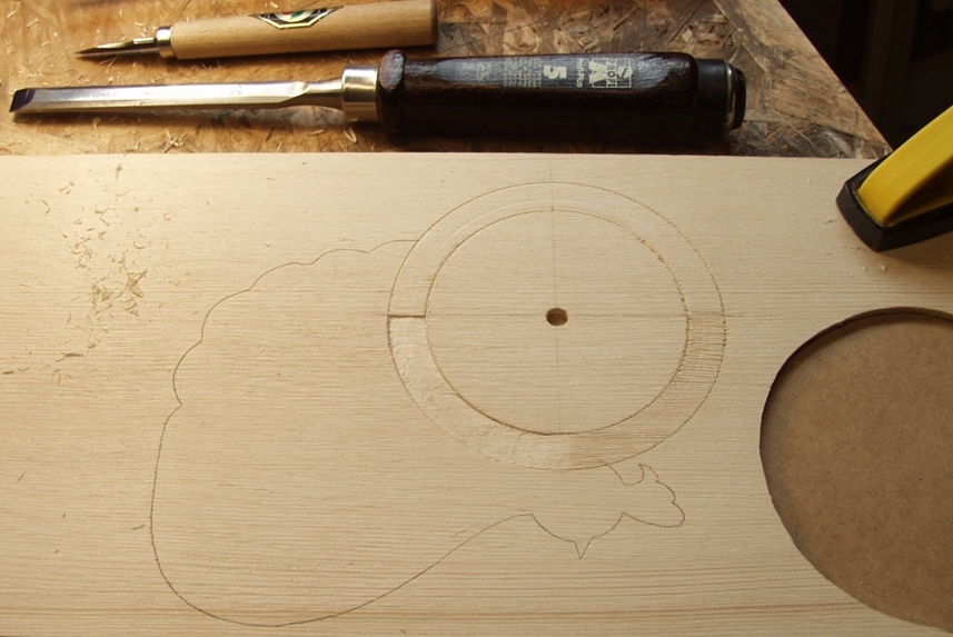 η θέση της ταστιέρας που είναι ήδη χαραγμένη καθώς και η θέση του ζυγού  ...  Εκεί πιθανότατα πρέπει να κάνω προσεκτικά μια μικρή σφηνούλα από φλαμούρι για