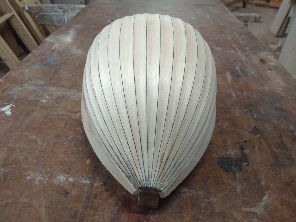 Η λάθος κοπή (βιαστική) της μιας πλευράς της  άκρης των δουγων που ενώνονται με το πλαιναρι, με ανάγκασαν  να μεταφέρω την ένωση των πλαιναριων λίγο δεξιά απ' το κέντρο του σκάφους !!