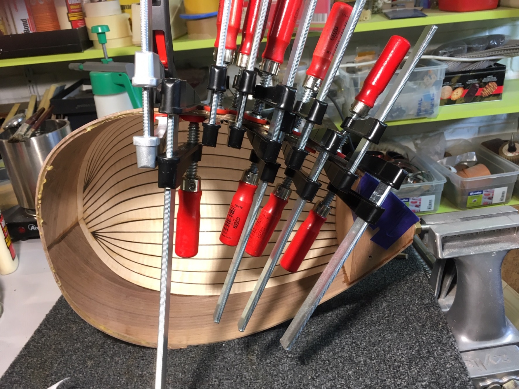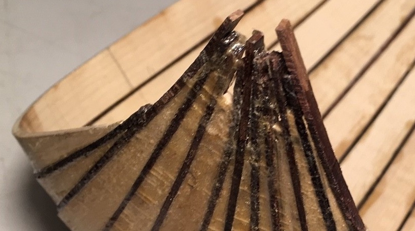 - Ιωσήφ, τα φιλετάκια του παλίσσανδρου που βλέπεις είναι ενάμιση χιλιοστο και βάλε. Αλλά τελικά κατέληξα σε 1,2 γιατί ταιριάζουν ανετότερα στη μικρούλα ημιπεριφέρεια που καταλήγει το σκάφος στο σημείο της ένωσης.
