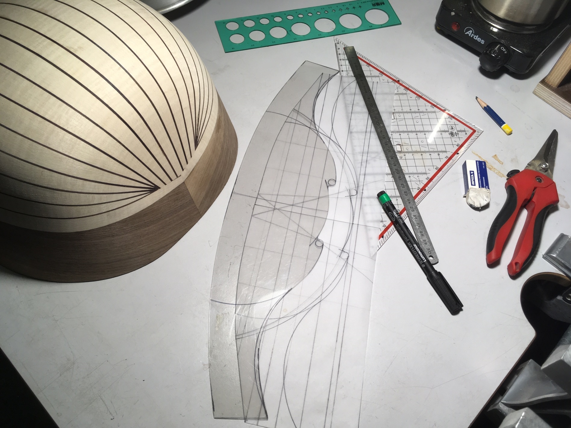 Το ρηχό αυλάκι βάθους ενός χιλιοστού χαράχτηκε με το ρούτερ. Η καμπύλη του σχεδιάστηκε να είναι  λίγο πιο κλειστή (με τη μέθοδο "κοιταω-με-περισπούδαστο-ύφος-και-λέω-καλά-είναι-τόσο"). Μετά το "σιδέρωμα" των βρεγμένων φιλέτων, η ελαστική υστέρηση (springback) τα επανέφερε πολύ κοντά στην πραγματική καμπύλη.