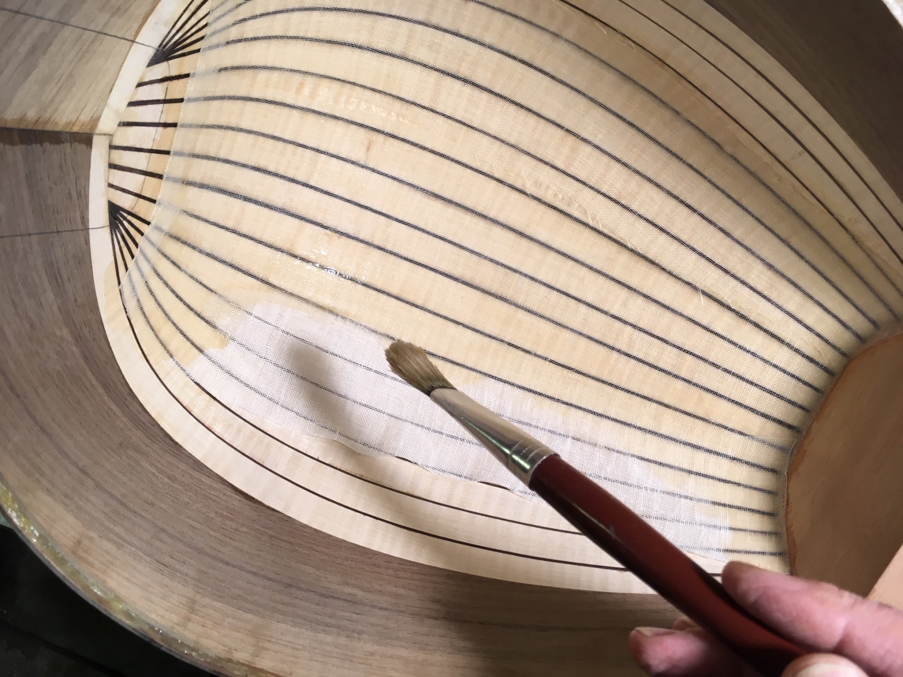 Πιστεύω ότι μ' αυτό τον τρόπο ενισχύεται το σκάφος (θηρίο!) αλλά και η επιφάνεια αποκτάει μια υφή σαγρέ-καραμελιζέ που πιστεύω ευνοεί τις αντανακλάσεις του ήχου στο εσωτερικό του.