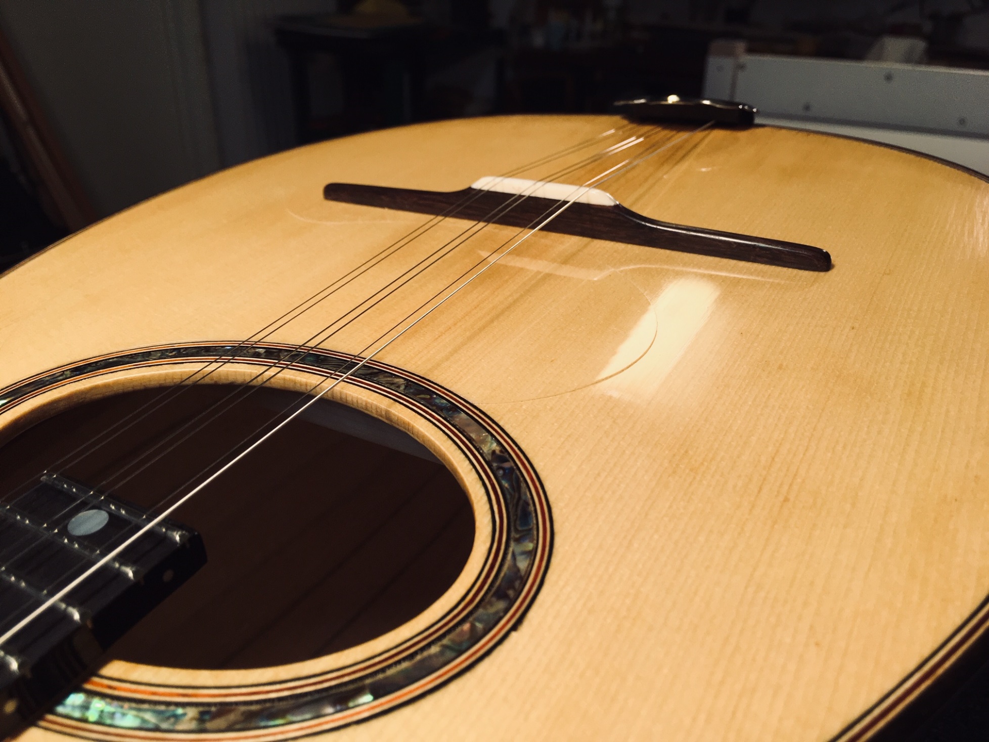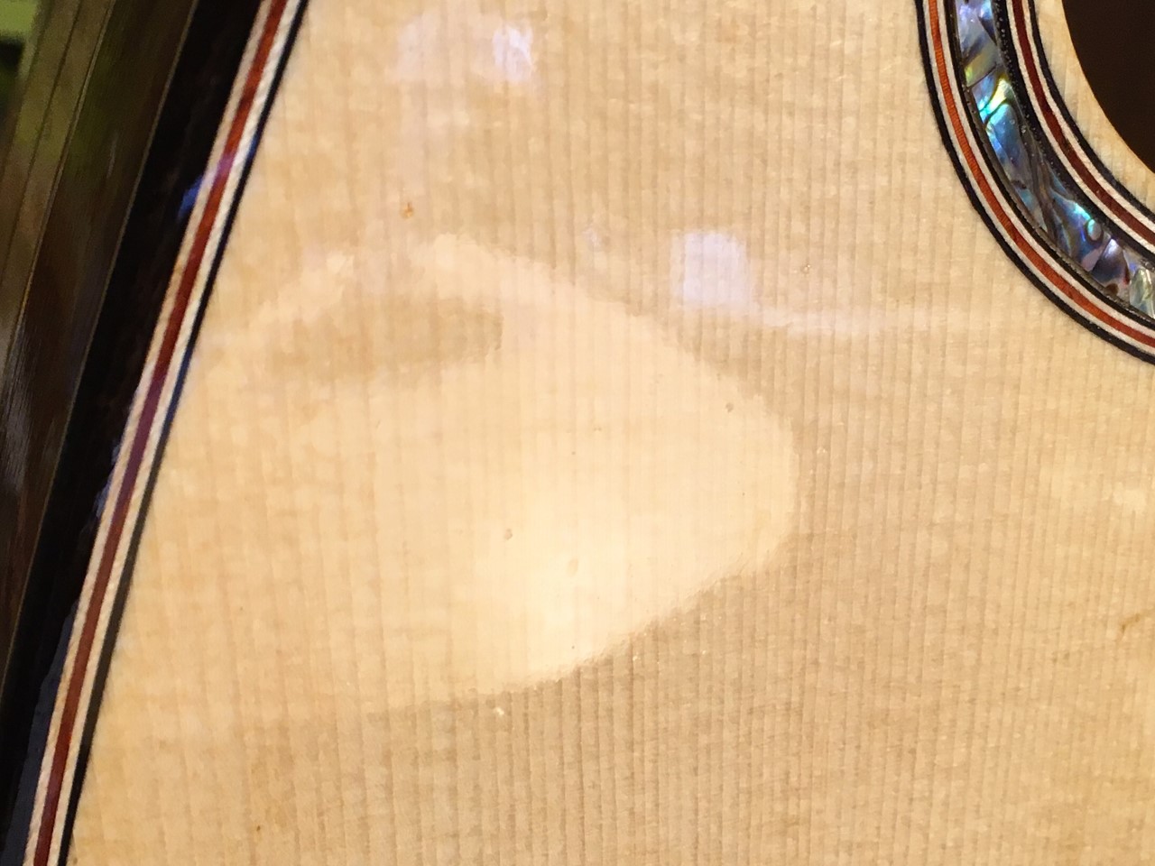 Και μια φωτό από την πρόοδο των εργασιών όπου διακρίνονται τα ανεπιθύμητα μπιμπίκια που σύντομα θα απομακρυνθούν. Η γυαλιστερή πλέον επιφάνεια αντανακλά το …3ο μπουζούκι του κιθαρίστα!