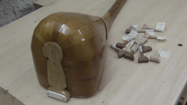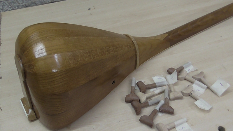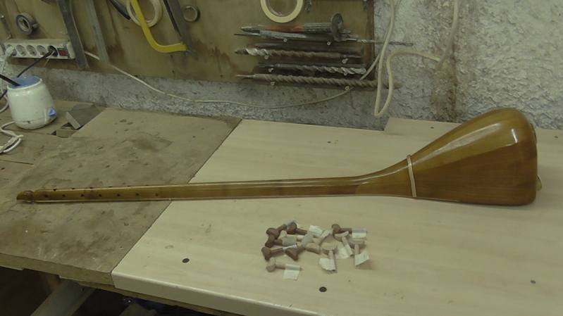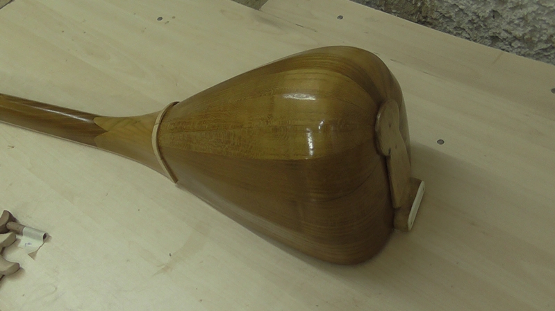 Αὐτό μέ τό τρυπητό κοκκαλάκι πρός τό μέρος τῶν κλειδιῶν τό εἶχα ἐφαρμόσει ἐπιτυχῶς πρίν χρόνια σέ καναδυό ταμπουράδες , ἀλλά μέ κίνδυνο κάποια στιγμή νά πεταχτῆ πιεζόμενο ἀπό τήν τάση τῶν χορδῶν . Κατέληξα στό συμπέρασμα ὅτι δέν εἶναι καί ἡ καλύτερη μέθοδος .