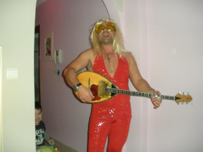 και τελος εγω προπερσι της Αποκριες μιμουμαι τον γνωστο Σπυρο Γριβα με το μπουζουκι που εφτιαξα το 08.Το χαλασα κι αυτο ομως γιατι ενω ητανε καμπανα, καθησε το καπακι του ,οχι πολυ, αλλα δεν μπορουσα να το βλεπω. Κουρε.......................πως με βρισκεις?