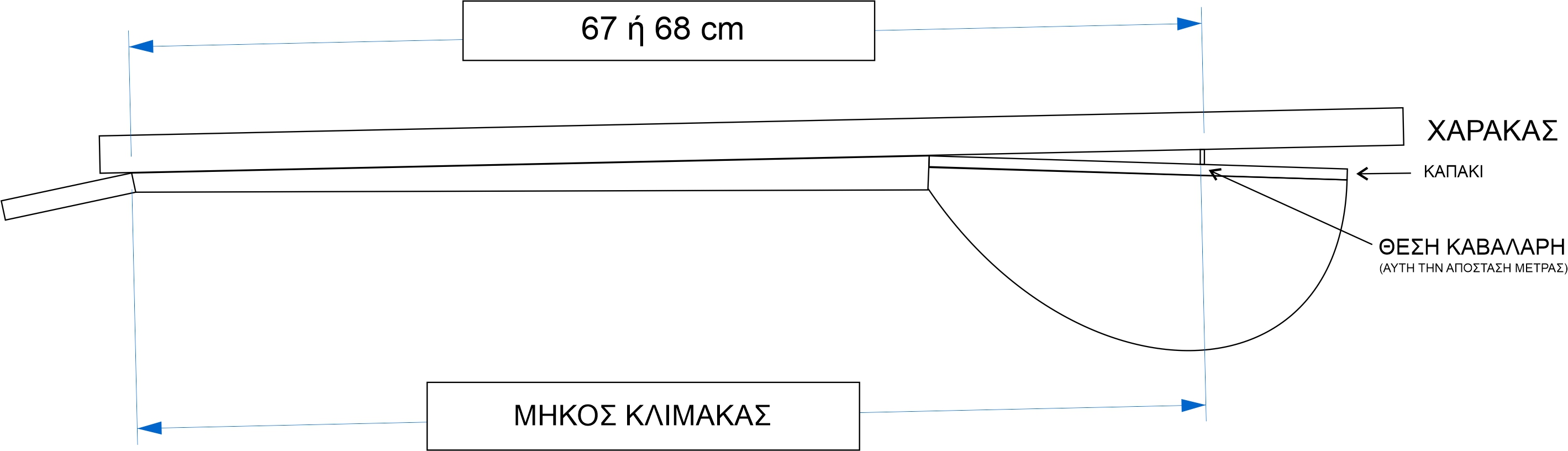 Στο σχεδιάκι παραπάνω έχω τα εξής σημεία στην ευθεία του μάνικου από την ένωση μέχρι πίσω στον χορδοκράτη (δηλαδή στα χείλη του σκάφους "επιπεδωμένα" πριν το ροκάνισμα ΑΛΛΑ θεωρητικά ΜΕ ΤΟ ΚΑΠΑΚΙ) : 0 στην ένωση, Κ στον καβαλάρη και Χ στον χορδοκράτη.