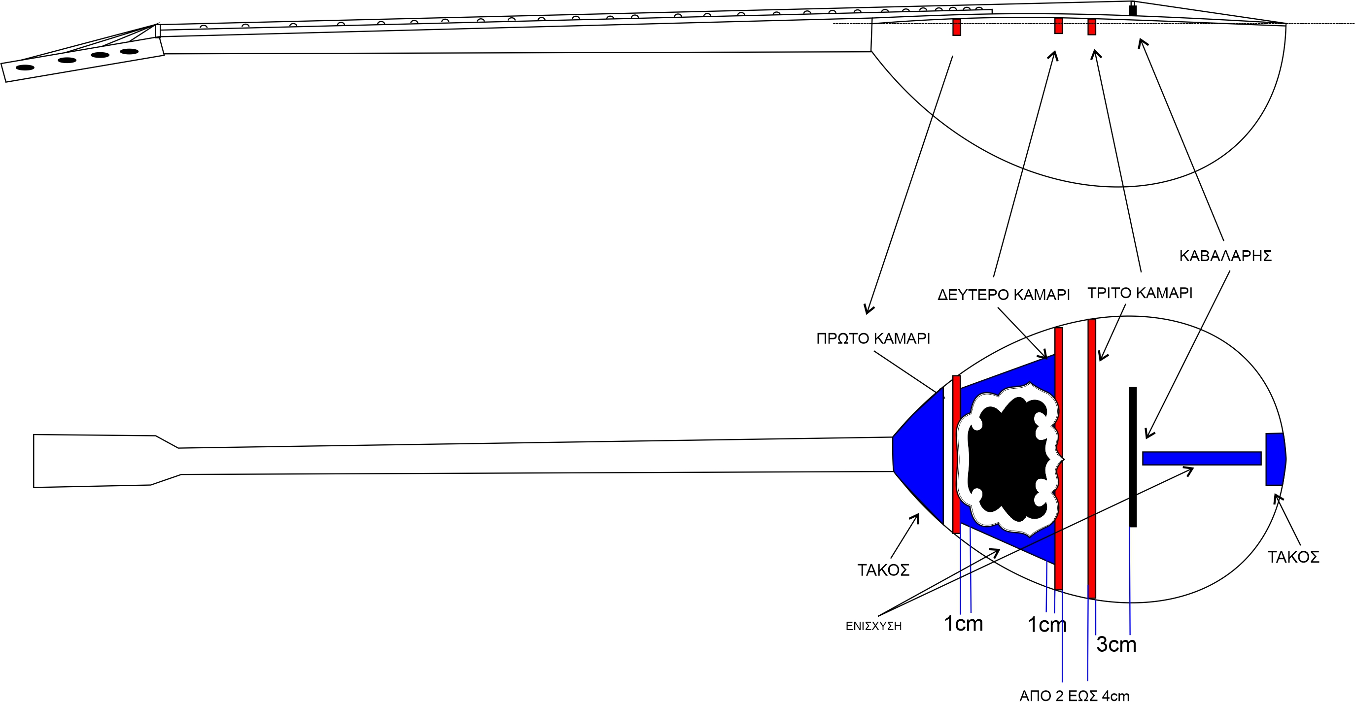 Γιώργο είναι μεγάλο το θέμα για ανάλυση από δω, θα τα πούμε από κοντά στη μάζωξη. Σκέψου μόνο κάποια απλά πραγματάκια, η ταστιέρα μπορεί να κατέβει στα 6 και τα τάστα στο 0.8? Τα καμάρια μπορούν να κατεβάσουν ανάλογα με την κλίση μέχρι και 1 χιλ τον καβαλάρη? Οι χορδές σε τετράχορδο 67αρι με σκάφος 38 πόσο θα τραβήξουν το μάνικο μπροστά, πόσο θα πέσει ο καβαλάρης? Έχεις ακούσει παλιό μπουζούκι με 15 καβαλάρη? Και κλίση δεν δίνεις στο σκάφος όταν είναι ψηλός ο καβαλάρης αλλά το αντίθετο. Παλιά κάποιοι που κολλούσαν τα μανίκια ίσια ή τους έβγαινε χαμηλός ο καβαλάρης κατεβάζανε το σκάφος. Τέλος πάντων είναι τόσα πολλά, μόνο με συζήτηση γίνεται.