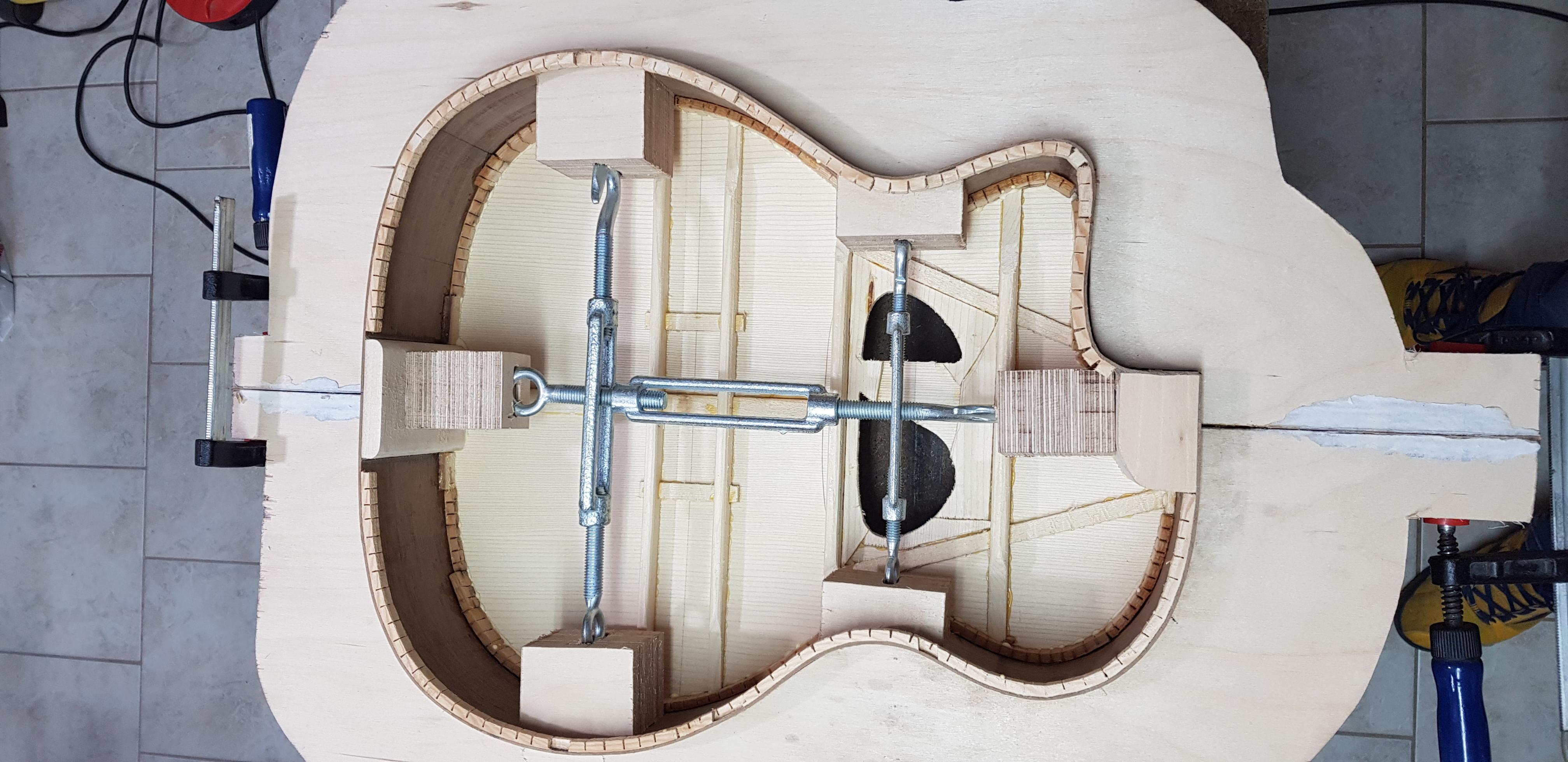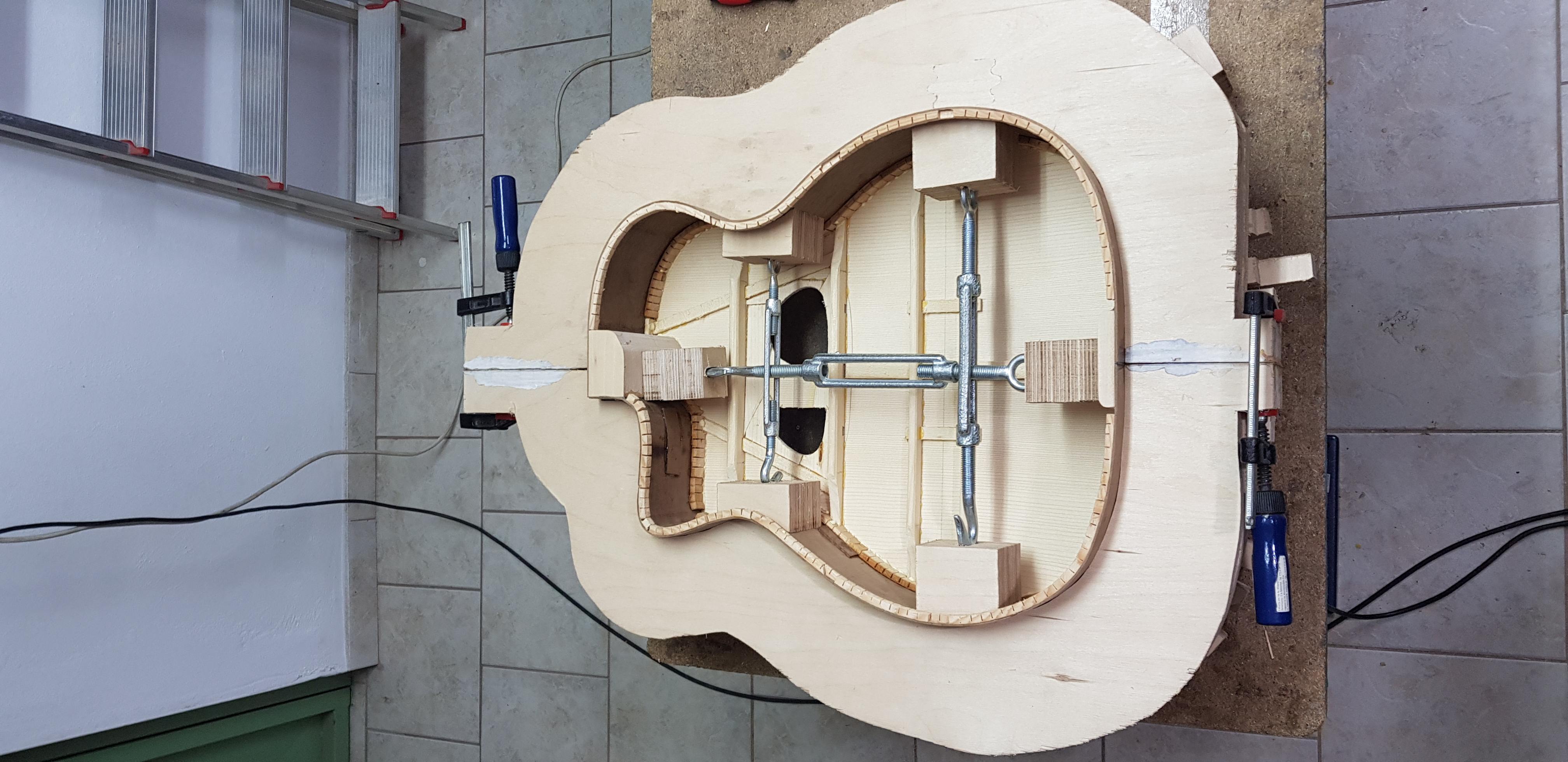 Τωρα,την τσακιση την κανεις πριν ενωσεις τα δυο μισα εννοειται,στο μισο κομματι μονο , εκει που θα πατησει στο καπακι δεν λυγιζεις.Τωρα το πόσο ειναι σχετικο.εγω δεν εδωσα πολυ και ενισχυσα τα μπασα ετσι και συμπεριφερεται οπως τις σημερινες που ειναι με θόλο απ οτι καταλαβα απ αυτα που ελεγε ο Αδωνις.Με την εντονη τσακιση πετυχαινεις να φευγει ο ηχος μπροστα ,οι μουσικοι που ειναι διπλα σου μπορει να μην σ ακουνε αλλα αυτοι που ναι μπροστα σου εστω και μακρια σ ακουνε καμπανα.Εχουν πιο δυνατο ηχο,που ηταν το ζητουμενο της εποχης τοτε αλλα πιο οξυ και σκληρο και πασχουν απο χαμηλες,ειδικα οι manouche με oval hole που εχουν και 4 καμαρια.