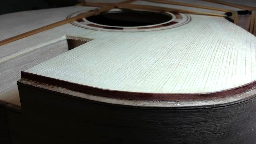Το εσωτ. φιλέτο ,  το purfling  ,  θα αποτελείται από τρία διαδοχικά κολλημένα φιλετάκια σαπέλι/σφενδάμι/σαπέλι.