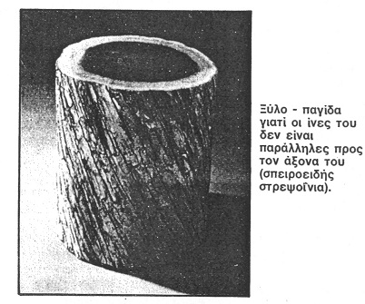 Βαρυμορφωμένο ξύλο: Όταν τα «νερά» του ξύλου (ίνες) αλλάζουν απότομα κατεύθυνση μειώνεται η αντοχή του.