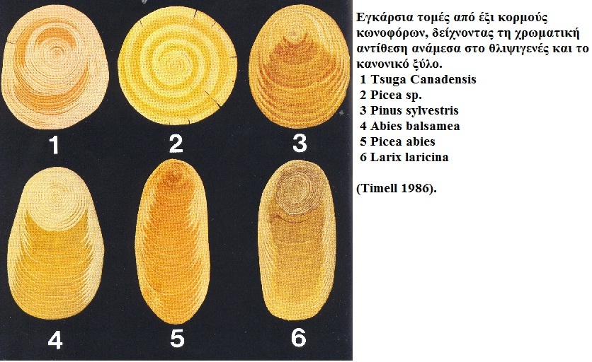 Πρέπει να διευκρινίσουμε ότι αυτοί οι ανώμαλοι χρωματισμοί του ξύλου, δεν οφείλονται σε παράσιτα (βακτήρια, μύκητες) ή σε τραυματισμούς των δένδρων, αλλά σε άγνωστα αίτια, που πρέπει να έχουν σχέση με την κληρονομικότητα των ειδών. Οι παρασιτικές χρωματικές ανωμαλίες του ξύλου που οφείλονται σε προσβολές από π.χ. μύκητες, περιγράφονται στη συνέχεια σε άλλο κεφάλαιο.
