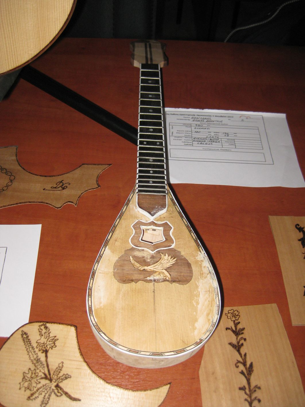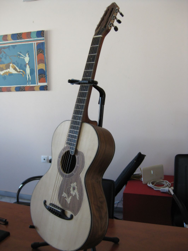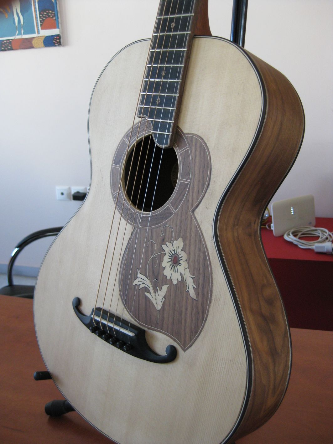 Ειναι φτιαγμενος με καπακι ελατο, σωμα καρυδια -βεγκε, ταστιερα βεγκε, μπρατσο καρυδια μπουνπιγκα και βεγκε, και ειναι σκαφτος.