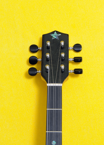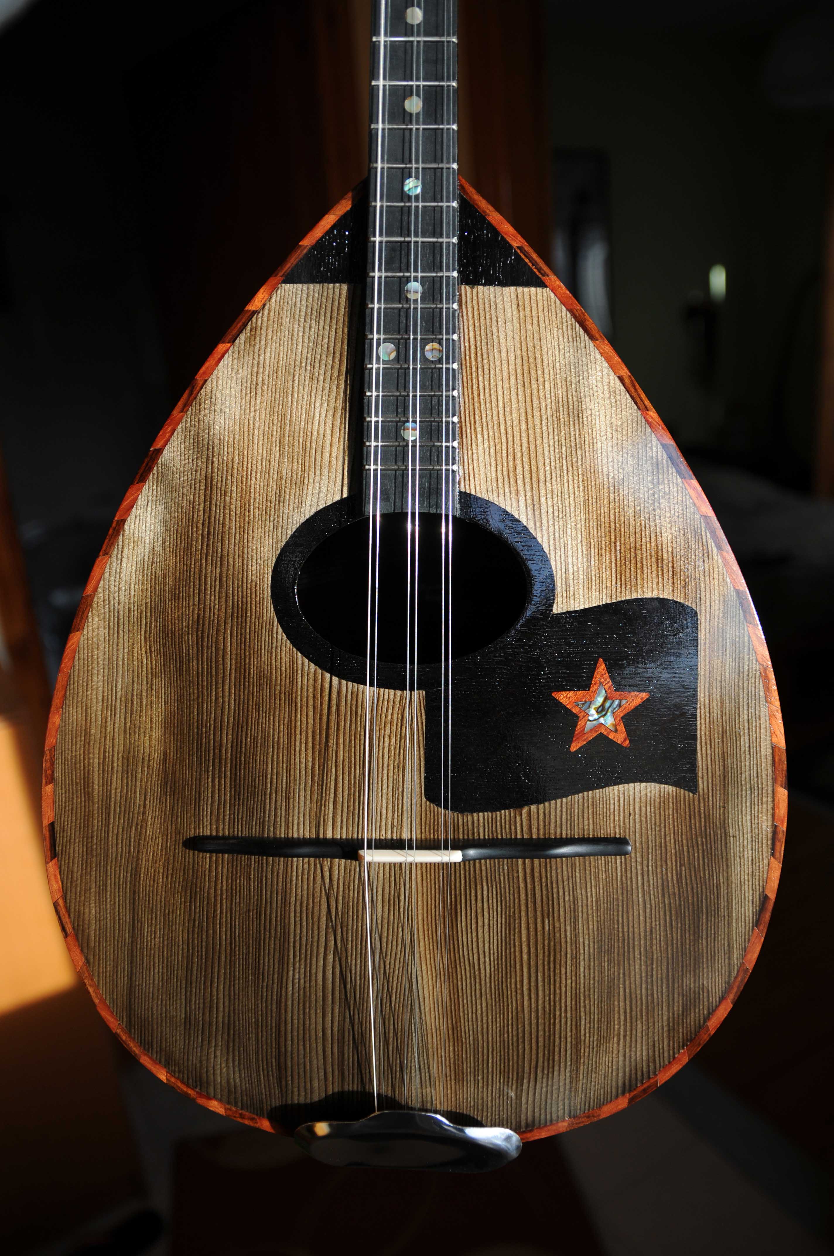 Καπάκι έλατο 3000 ετών με πενιέρα βελανιδιά 5000 ετών και αστέρι από μπουμπίνκα και όστρακο.Σκάφος Pau ferro-μπουμπίνκα.Ταστιέρα έβενος με σημάδια όστρακα.Κεφαλάρι επένδυση από βελανιδιά 5000 ετών με αστέρι από όστρακο.Μανίκι σφενδάμι με κόντρες έβενο και παλίσανδρο.Kαβαλάρηδες από χαβλιόδοντα μαμούθ.Λούστρο γομαλάκα