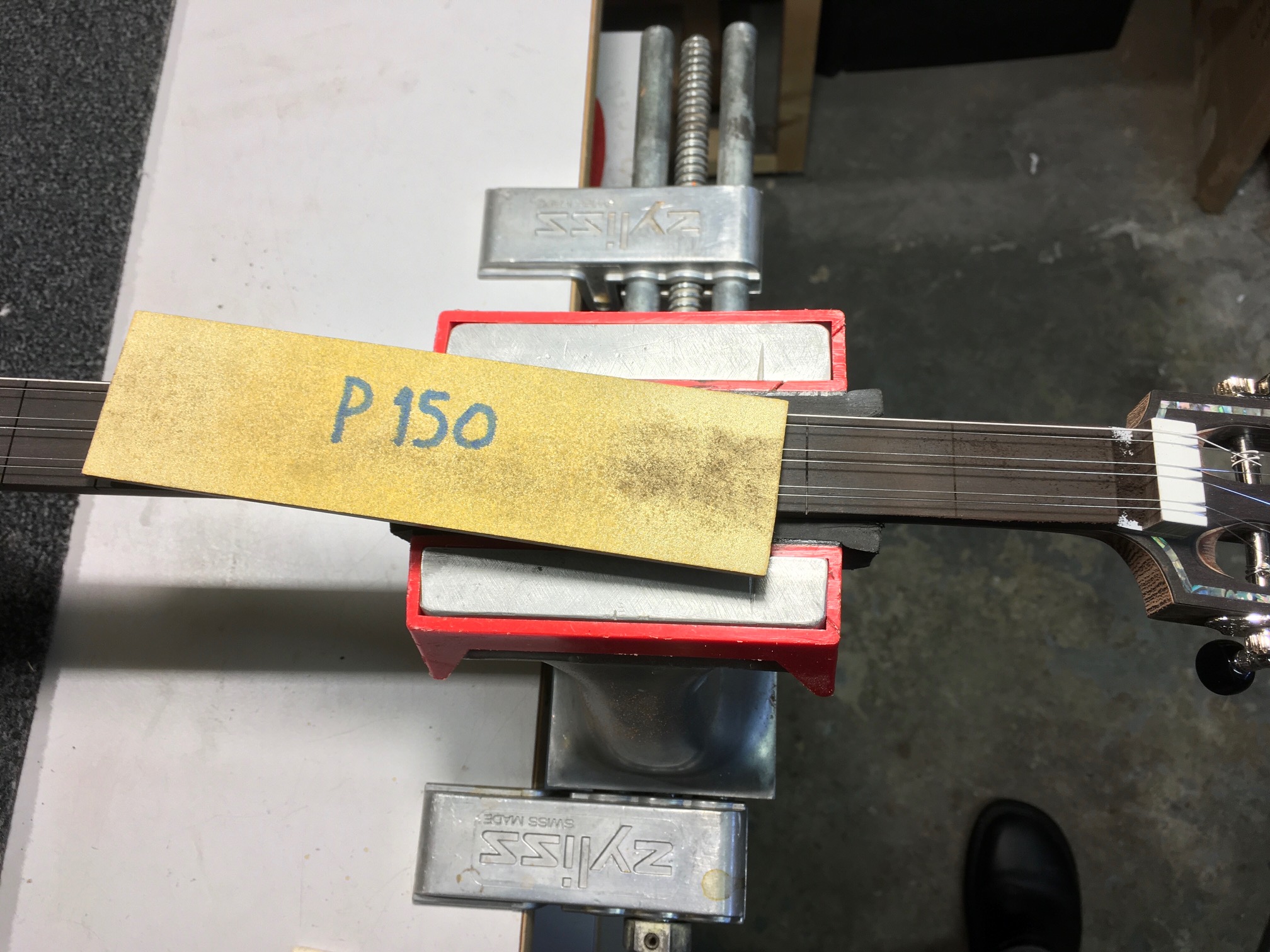 Έπρεπε λοιπόν να βρεθεί ένας τρόπος να γίνει η δουλειά με τις χορδές κουρδισμένες. Το μόνο εμπόδιο ήταν οι ίδιες οι χορδές που έπρεπε με κάποιο τρόπο να φύγουν απ’ τη μέση για ν’ αφήσουν την πλάκα με το γυαλόχαρτο να κάνει τη δουλειά της.