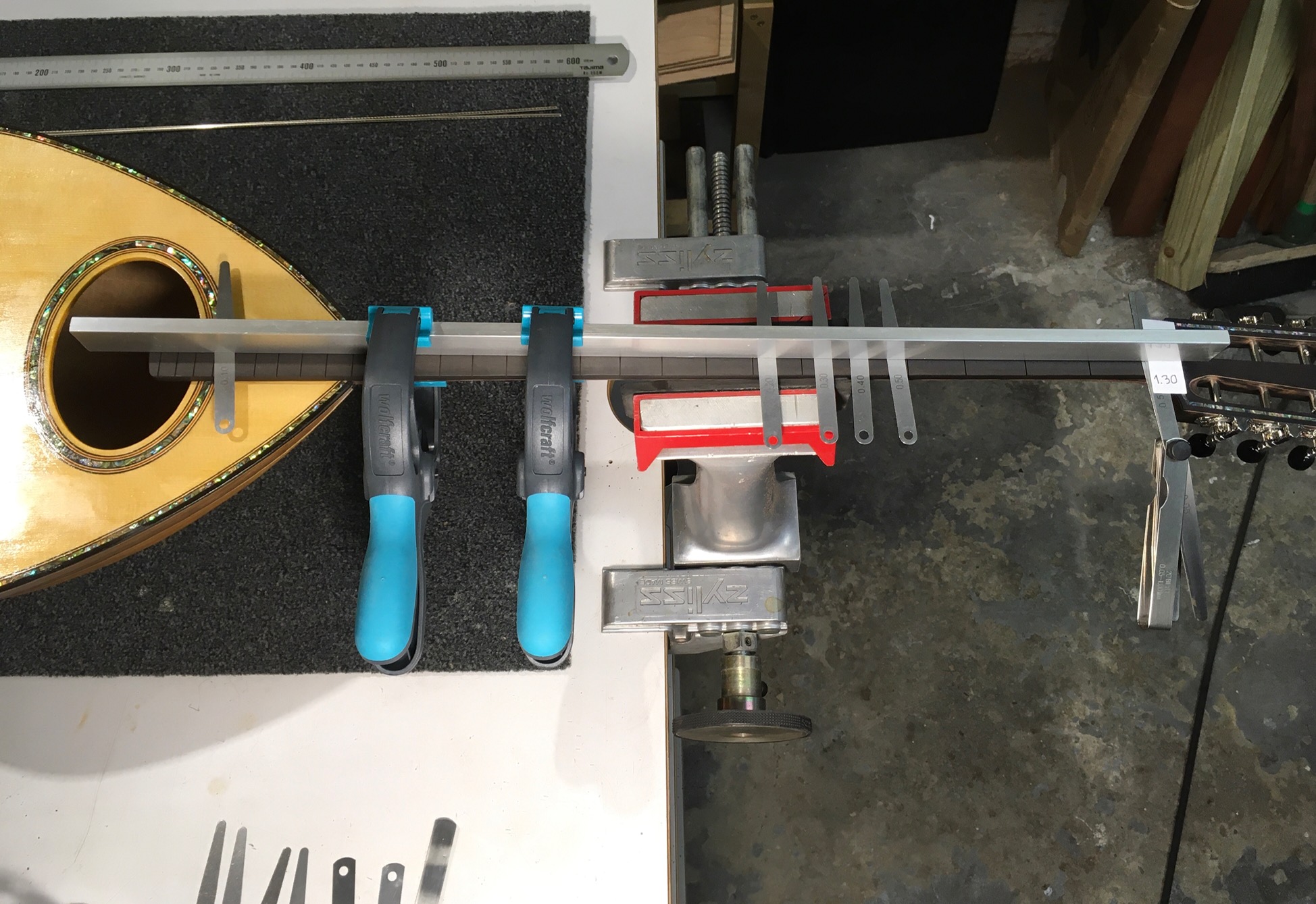 ....μήπως νά μή τεντώναμε τίς χορδές στό κανονικό τους κούρδισμα ( ὑποθέτω ὅτι μέχρι ἐκεῖ τίς τεντώνεις ) ἀλλά λιγώτερο ( δέν ξέρω μέχρι πόσο ) , νά τρίβαμε τήν ταστιέρα ὅπως ἔκανες , καί ν' ἀφήναμε τά τάστα νά συμπληρώσουν τό ἴσιωμα πού θά γινόταν , ἄν τεντώναμε τίς χορδές ὅσο τίς τέντωσες ἐσύ καί τρίβαμε ; Μήπως νά τεντώναμε τίς χορδές ὅσο τίς τέντωσες , ἀλλά νά μήν τρίβαμε τήν ταστιέρα ὥστε νά γίνη ἀπολύτως ἐπίπεδη , καί ν' ἀφηναμε τά τάστα νά συμπληρώσουν τήν ἐλλείπουσα " ἐπιπεδότητα " ;