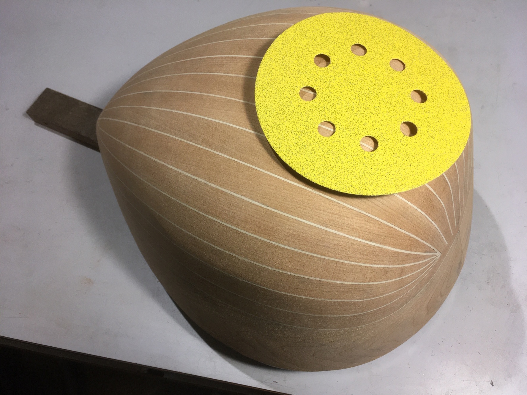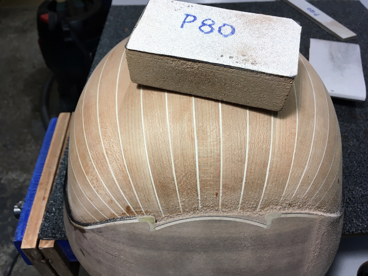 Για τις αντίστοιχες εργασίες στα καμπύλα μέρη του οργάνου σκεφτόμουν , να χρησιμοποιήσω το απλό σφουγγάρι - γυαλόχαρτο τυλίγωντας γύρω του κάθε φορά το κατάλληλο γυαλόχαρτο