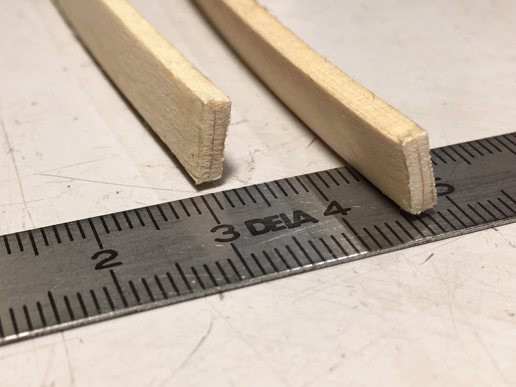 Αυτή τη φορά λοιπόν επέλεξα να βάλω πατούρα από καμαρόξυλο (όπως και στο πρώτο μου όργανο) δηλαδή  το ίδιο υλικό με το καπάκι: έλατο ακτινικά κομμένο. Οι διαστάσεις του προφίλ της πατούρας είναι ανησυχητικά μικρές όπως φαίνεται και στη φωτογραφία που ακολουθεί αλλά όπως ίσως θα έχετε καταλάβει με ελκύουν οι κατασκευαστικές ακρότητες. Άλλωστε όταν αποκτάμε πληροφορίες για τις ακραίες τιμές των παραμέτρων, τότε διαμορφώνουμε πληρέστερη άποψη και για τις “μεσαίες” τιμές.