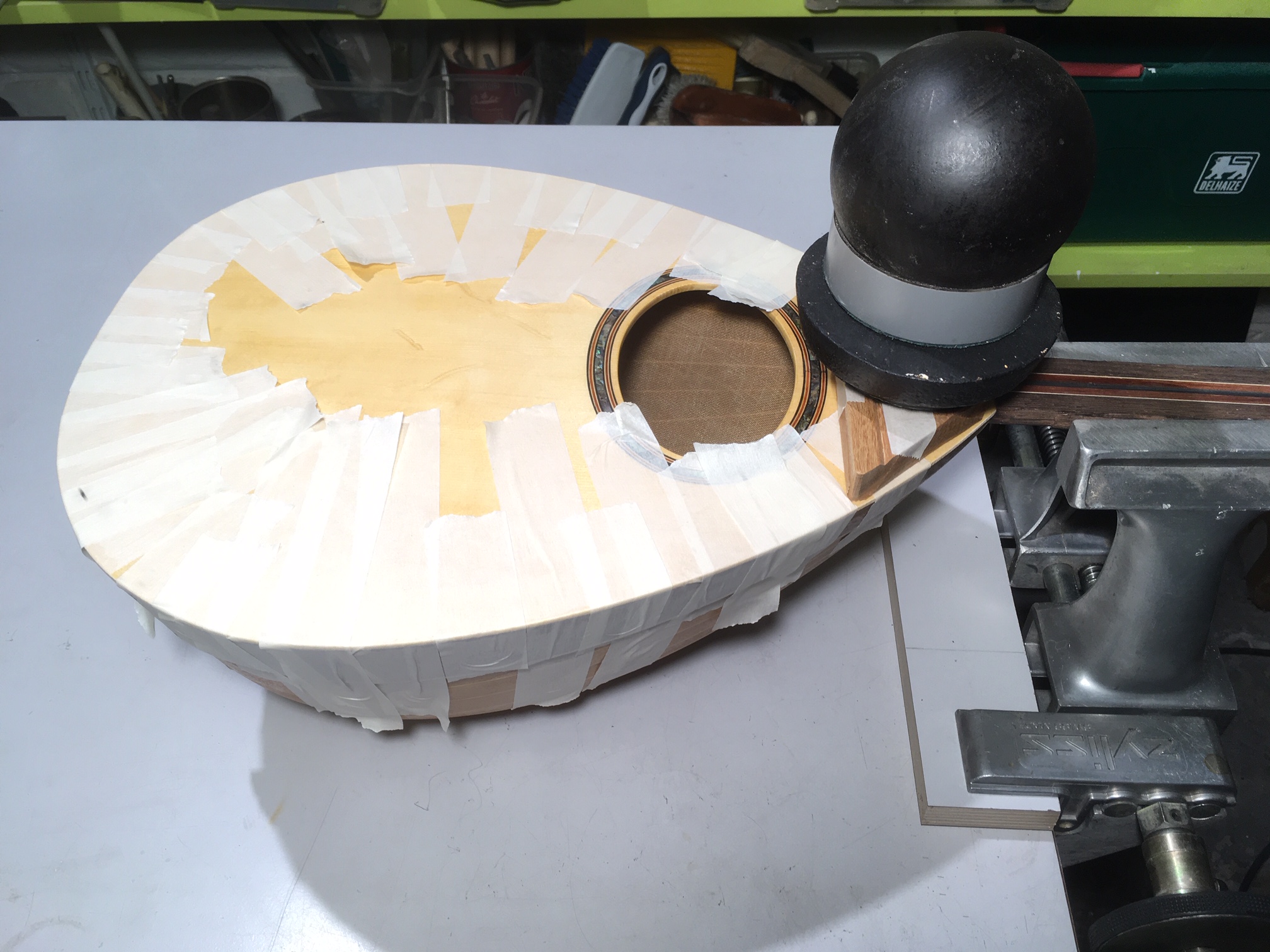 https://esomogyi.com/articles/principles-of-guitar-dynamics-and-design/, από το οποίο κράτησα μόνο ό,τι με συμφέρει γιατί είχα πάρει ήδη τις αποφάσεις μου και το μόνο που μου έλειπε ήταν λίγη θεωρητική υποστήριξη. Εστίασα λοιπόν στο απόφθεγμά του το ότι όλα στην οργανοποιία είναι έξυπνες μαντεψιές (Everything in lutherie is intelligent guesses) και σα γνήσιος εξυπνάκιας στρώθηκα στη δουλειά.