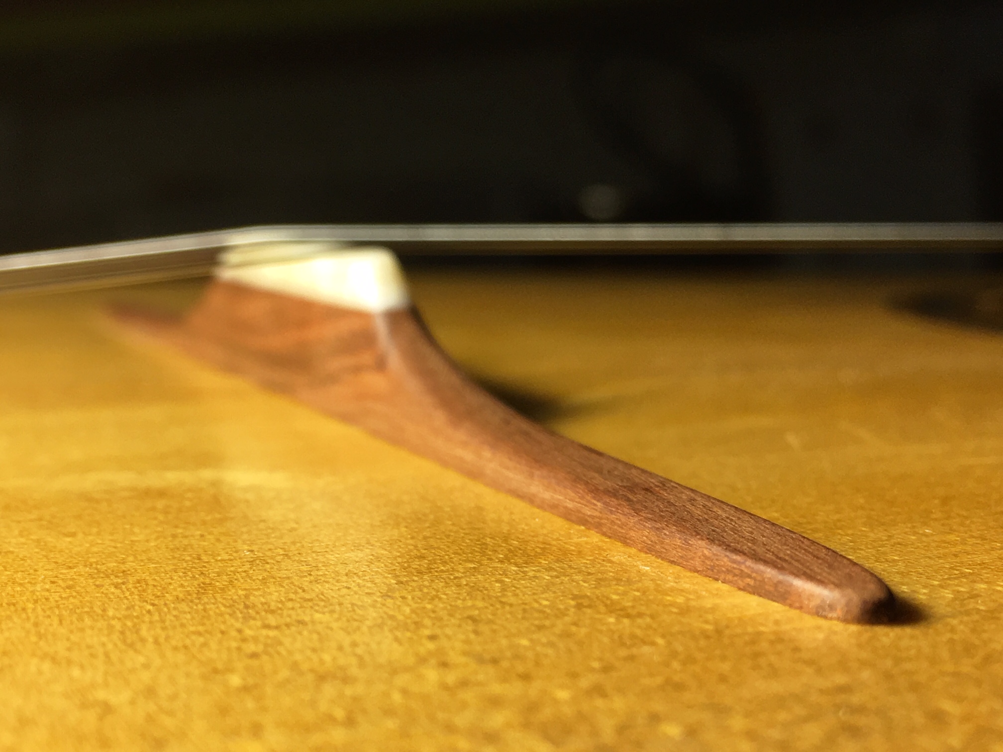 Το προφανές αποτέλεσμα ήταν ότι η επάνω επιφάνεια από το κοκαλάκι στένεψε από λίγο έως πολύ. Μετά από αναρίθμητες δοκιμές και βάλε-βγάλε καβαλάρηδες κατέληξα στο συμπέρασμα ότι όταν στενεύει το κοκαλάκι, ραφινάρεται μεν κάπως ο ήχος, αλλά δεν πρέπει να στενέψει πάρα πολύ γιατί δεν ανταποκρίνεται καλά στο εμφατικό παίξιμο. Για τα δικά μου μέτρα και για το συγκεκριμένο όργανο εκτιμώ ότι το κοκαλάκι στη στέψη του δεν πρέπει να είναι στενότερο από 3 χιλιοστά.