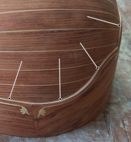 Από μέσα είναι σφεντάμι 1,6χιλ ενιαίο ξύλο , χωρίς φιγούρα κι απ' έξω η τριανταφυλλιά 1,2χιλ,