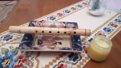 Φλογέρα από καλάμι με ανοιχτό επιστόμιο σε τονισμό Ντο. Στο βίντεο μπορείτε να δείτε τα στάδια κατασκευής και να ακούσετε ένα ηχητικό δείγμα.