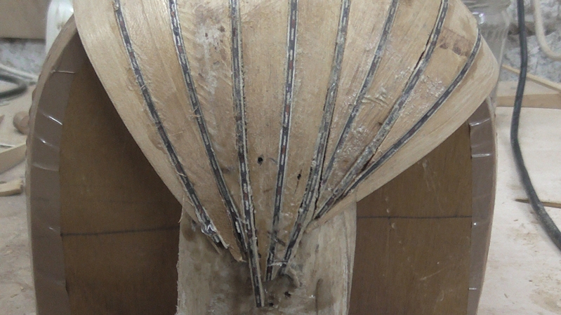 Ἐπίσης , κάτι ἄλλο μ' ἀπασχολεῖ : Ἄν καί ἔχω κάνει τό καλούπι γιά συμμετρικό σκάφος μέχρι τά πλαϊνάρια , ἡ τρίτη δούγα ( ἐκτός τῆς δουγομάνας ) ἀπ' τό δεξιό μέρος ὅπως βλέπουμε ἀπ' τό πίσω μέρος τό σκάφος , ἀρνεῖται νά ἔρθη στό κεντρικό σημεῖο σύγκλισης ( ἐκεῖ πού καταλήγει ἡ δουγομάνα ) , καί ν' ἀκολουθήση τό καλούπι , σηκώνεται . Ἔτσι κι ἐγώ , μίκρυνα τή δούγα στό πίσω μέρος , δημιουργῶντας ὑψηλότερα νέο σημεῖο σύγκλισης , ὥστε ἡ δούγα ν' ἀκολουθήση τήν κούρμπα τοῦ καλουπιοῦ καί νά μήν ἔχη διάκενα σχετικά μ' αὐτό . Μ' αὐτό ὅμως πού ἔκανα , ἡ ( πίσω ) ἀπόληξη αὐτῆς τῆς δούγας δέν κόλλησε στόν τάκο , ἀλλά μόνο στήν διπλανή της . Εἶναι σωστό αὐτό καί ἄν ὄχι τί πρέπει νά κάνω ;