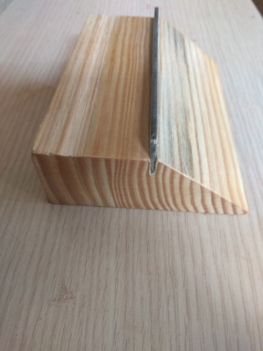 αυτά είναι τα "εργαλεία". Το τραπεζοειδές κομμάτι είναι του εμπορίου γι αυτή τη δουλειά. Το μήκος των πλευρών είναι διαφορετικό ώστε να χρησιμοποιείς άλλη πλευρά ανάλογα με την περιοχή που διαμορφώνεις. Τα μεγαλύτερα μήκη είναι για το πάνω μέρος της ταστιέρας (προς τα κλειδιά) και αλλάζεις πλευρά όσο προχωράς προς το σκάφος. Μπορείς να χρησιμοποιήσεις μια κάρτα, κομμένη έτσι ώστε κάθε πλευρά να αρκεί για τρία κάθε φορά (και μόνο τρία) τάστα ανάλογα με το που βρίσκεσαι στην  ταστιέρα.