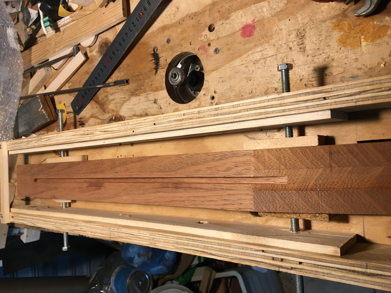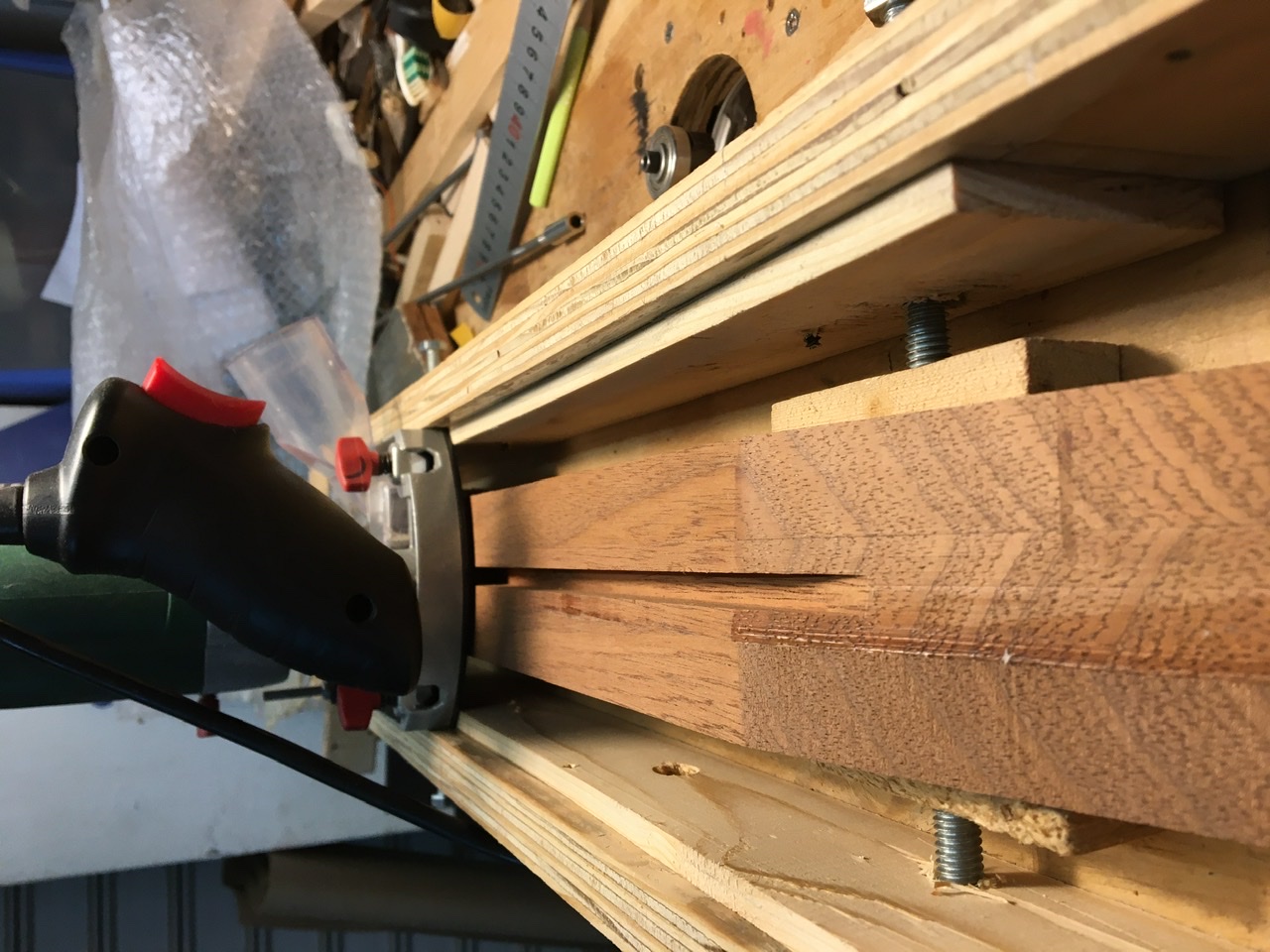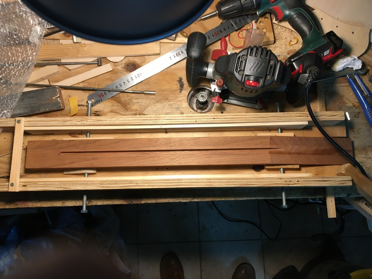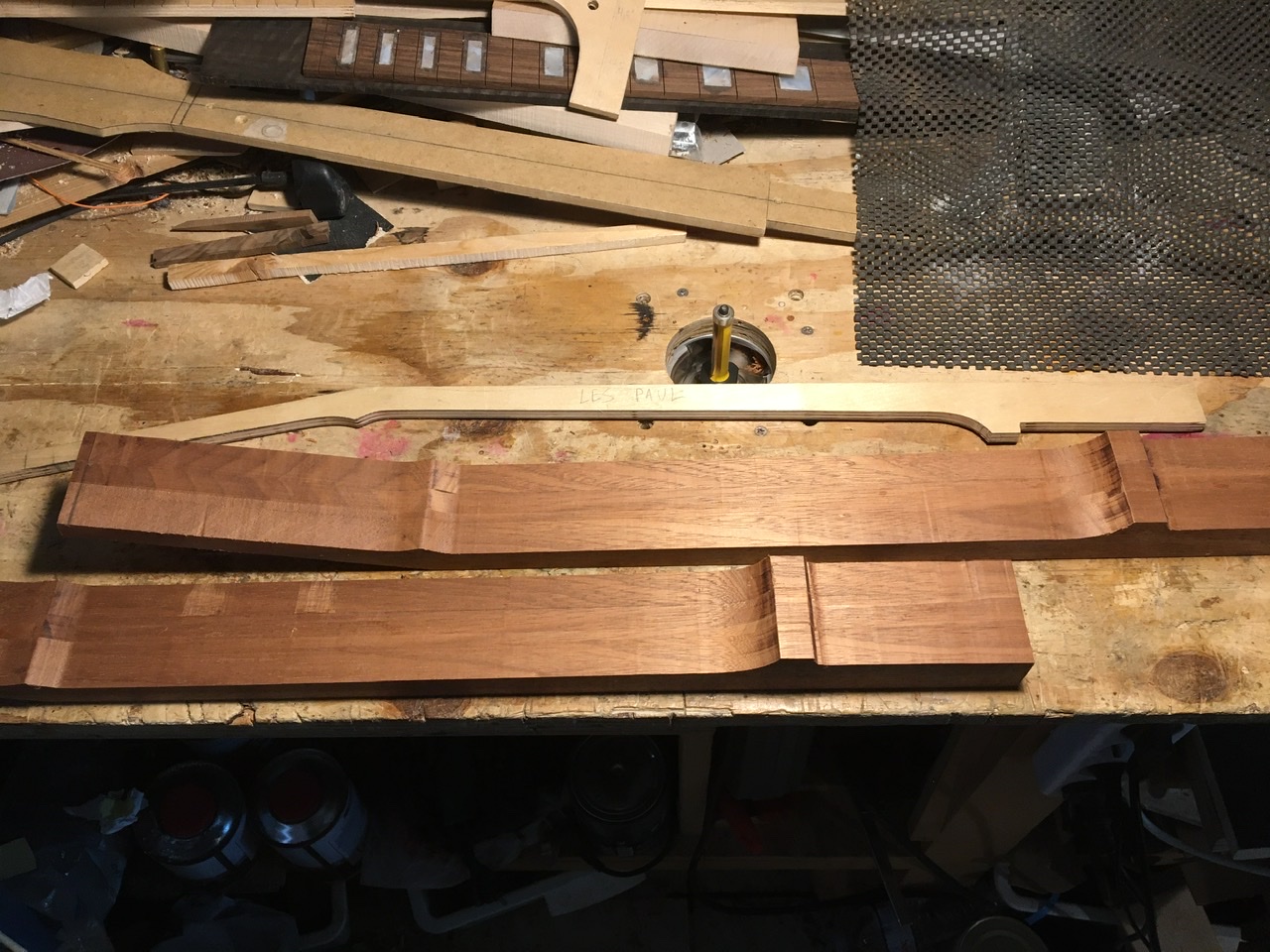 η διαδικασία δεν πήρε πάνω από 5 λεπτά αλλά χρειάστηκε αρκετός χρόνος για να μετατραπεί το γνωστό jig από fender κόψιμο με κυρτό οδηγό σε κοίλο οδηγό για Gibson  γιατί γίνεται από τη μεριά της ταστιέρας οπότε φτιάχτηκαν και οριοθετήθηκαν νέοι οδηγοί