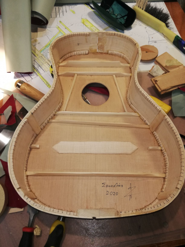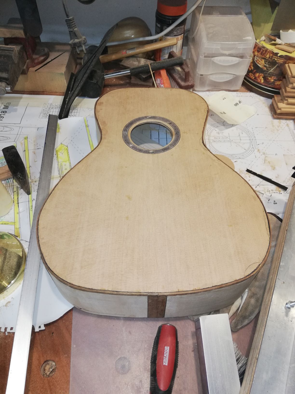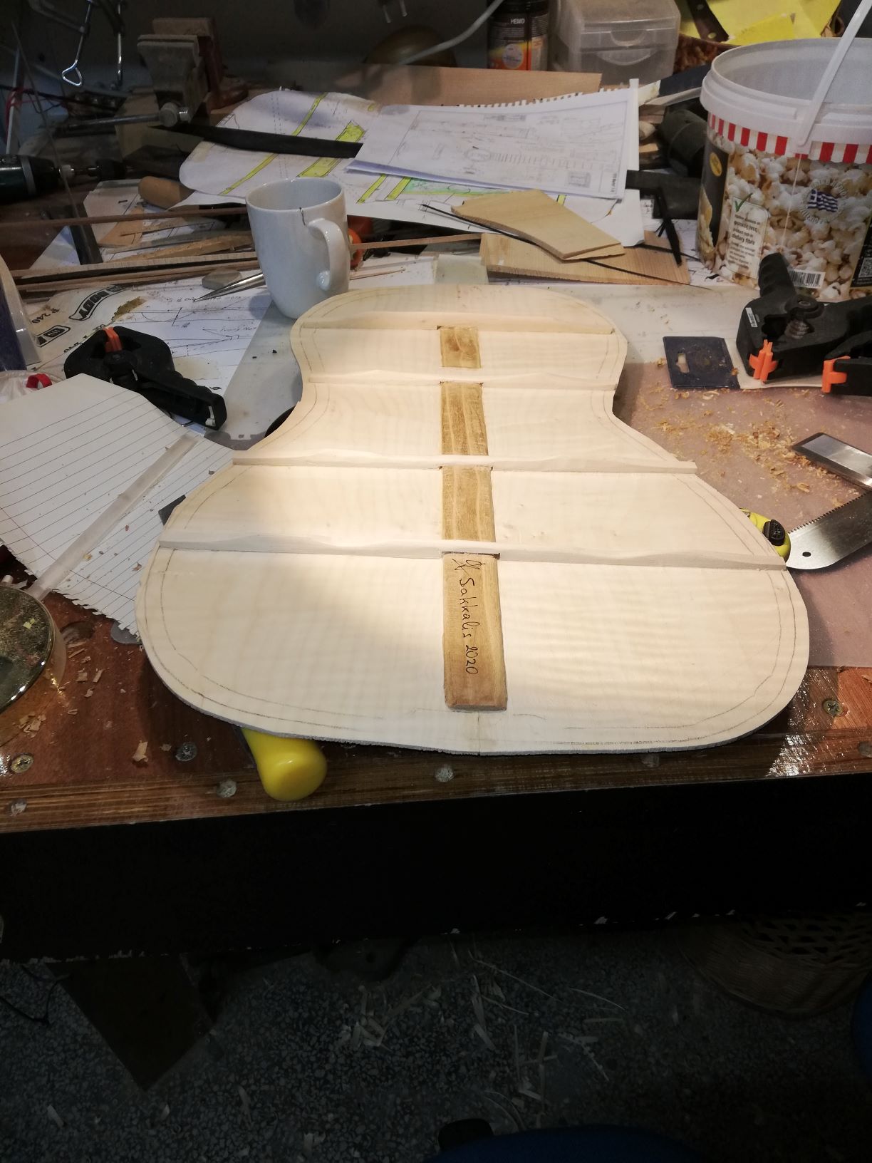 Ιωσηφ ευχαριστώ. Αυτό ήτανε το σκεπτικό μου. Το καπάκι το πήρα το 2016  ή 2017 (πρέπει να το τσεκάρω για ακριβεια) παρόλο που είχα ωραία καπακια ελατινα από το 2006 και νεότερα. Μου άρεσε σε εμφάνιση και ηχο όπως το χτύπαγα. Ισοβενο και πυκνόβενο φαινόταν πιο σκληρό από ελατο. Τελικά αυτο χρησιμοποιησα αλλά ήταν η πρώτα φορά που δούλευα κέδρο και για να είμαι ειλικρινής δεν είμαι και πολύ ευχαριστημένος τελικά. Παρόλο που φαίνεται σκληρότερο από Έλατο είναι λιγότερο συμπαγες και όταν καθάριζα τις κόλλες με το σκαρπελο μου έκανε εντυπωση πως πέταγε ευκολα κλετζα. Τελικά καλύτερα που κρατήσα τον Έλατο για επόμενη κιθάρα που θα είμαι και γω πιο έμπειρος στην κατασκευή Κιθάρας. Αλλωστε έχω ένα καλό σετ από κελεμπεκι μουαρε από το 2006 αγορασμενο για επόμενη και πιο καλή κιθάρα. Αυτή είναι η πρώτη μου και μαθαίνω. Τώρα από ήχο θα δούμε μολις τελειώσει αν τελικά άξιζε τον κόπο.